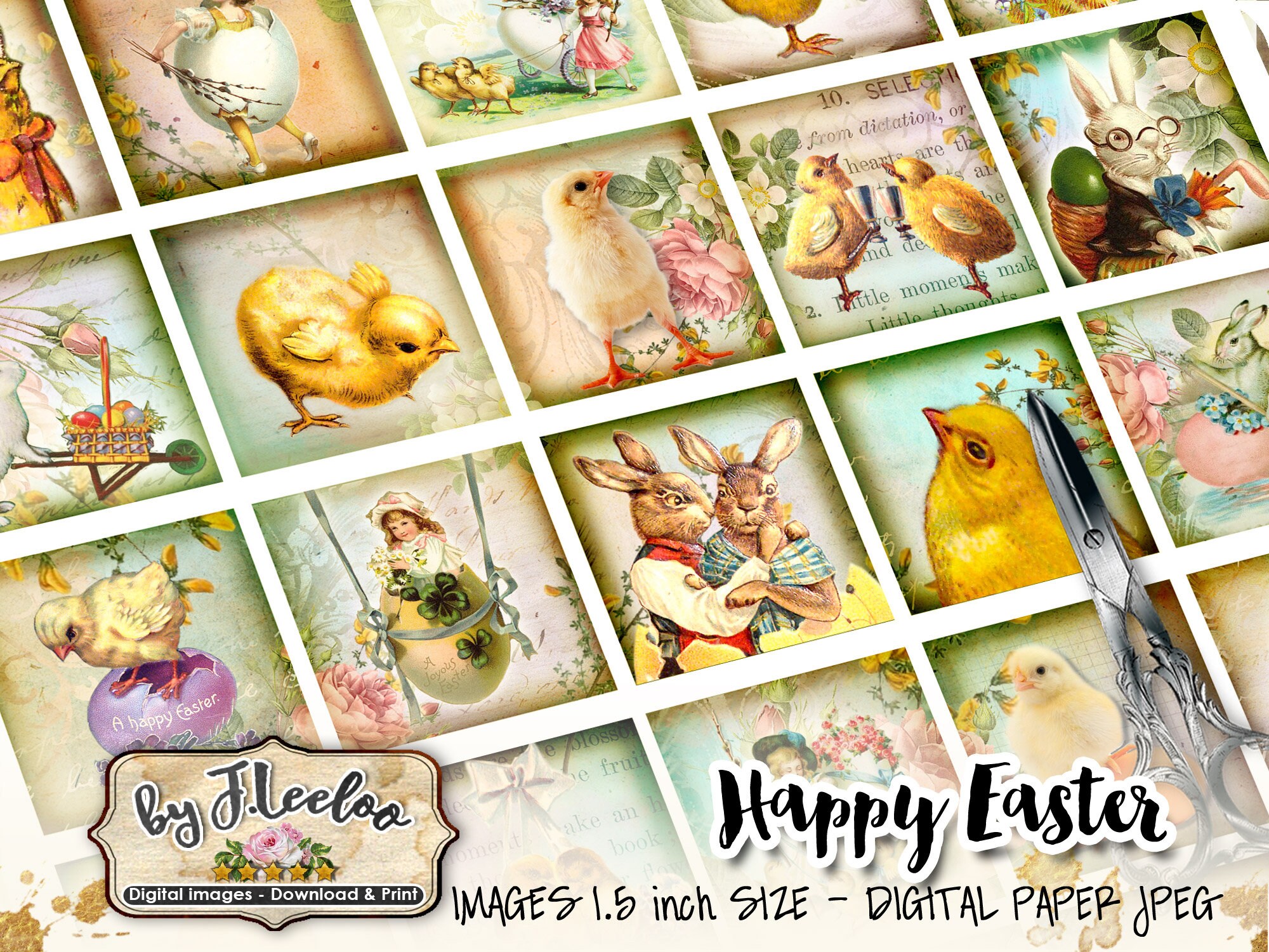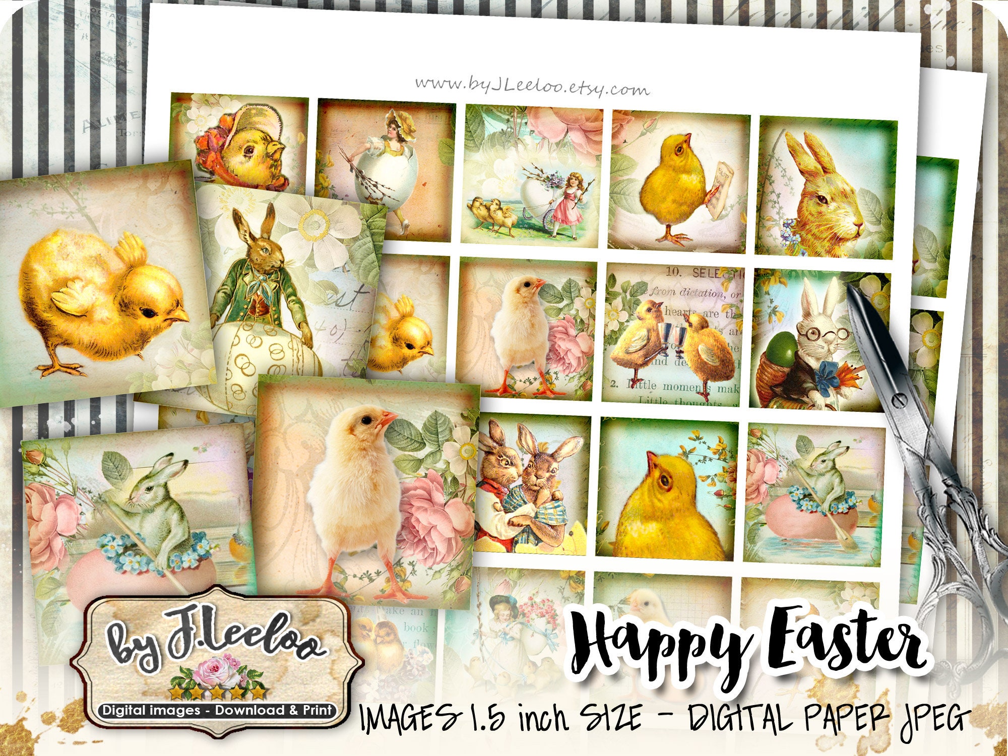 HAPPY EASTER Digital collage sheets - Square images download to print for jewelry, resin pendants, glass cabochon, charms, magnets, stickers, scrap book, hang tags, a great supply for your craft project.