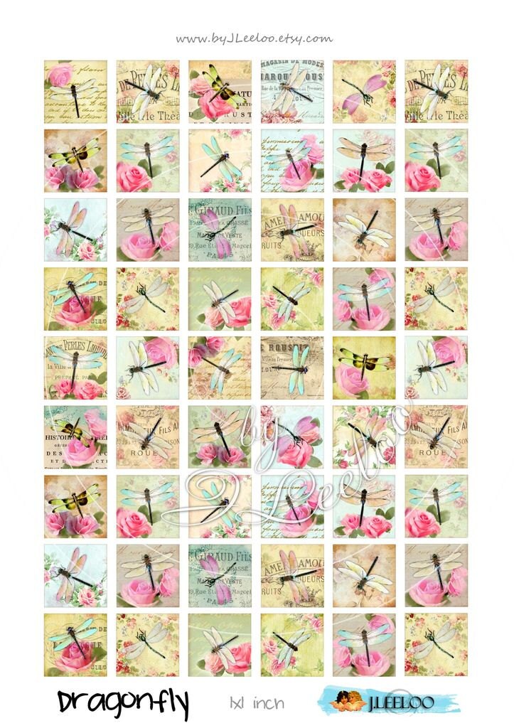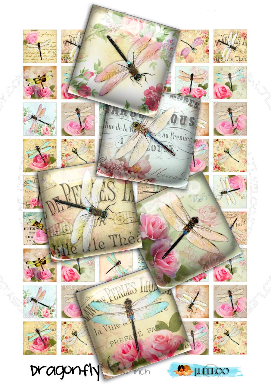 DRAGONFLY - Instant download printable - digital collage sheets - square images for your crafting project - glass cabochons, jewelry, resin pendants, hang tags, rings, earrings and all your need for your art.
