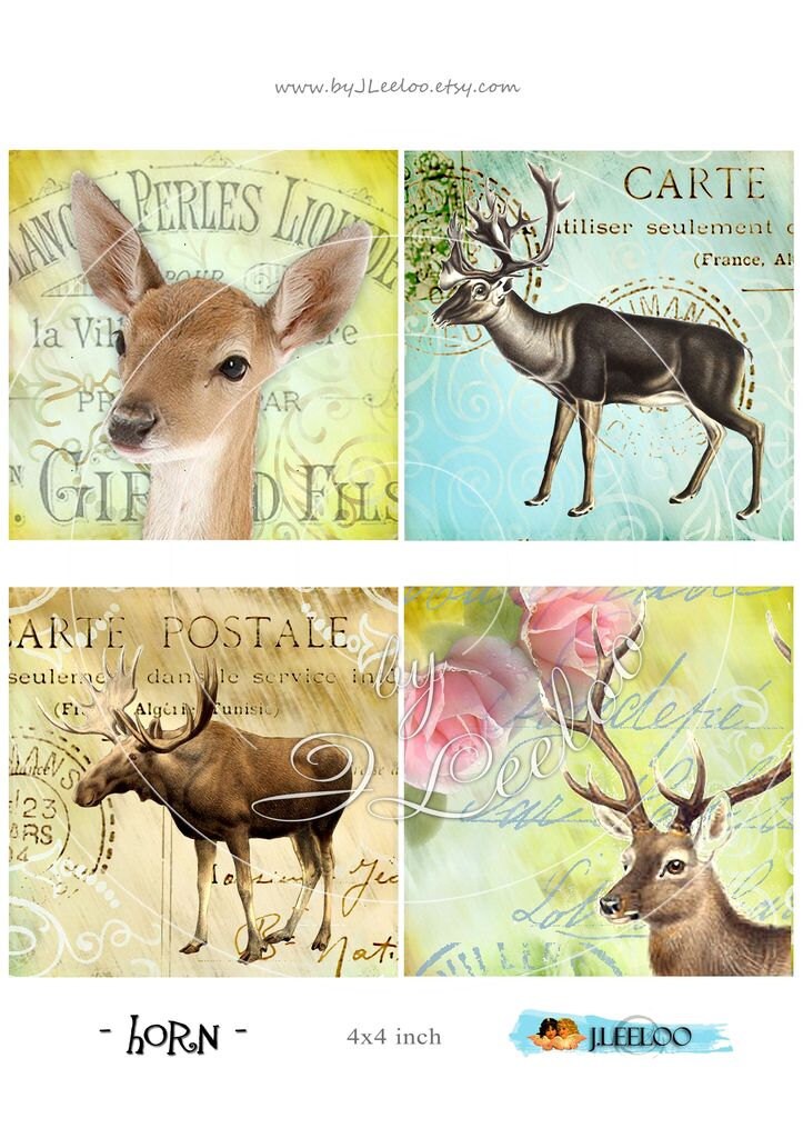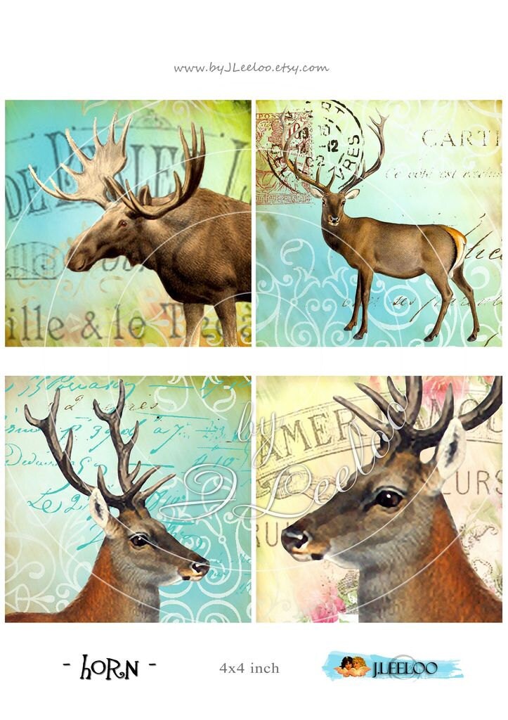 HORNS Instant Download - Digital collage sheets - Square printable images for coaster, jewelry, glass cabochons, greeting cards, stickers, hang tags and all your artwork.