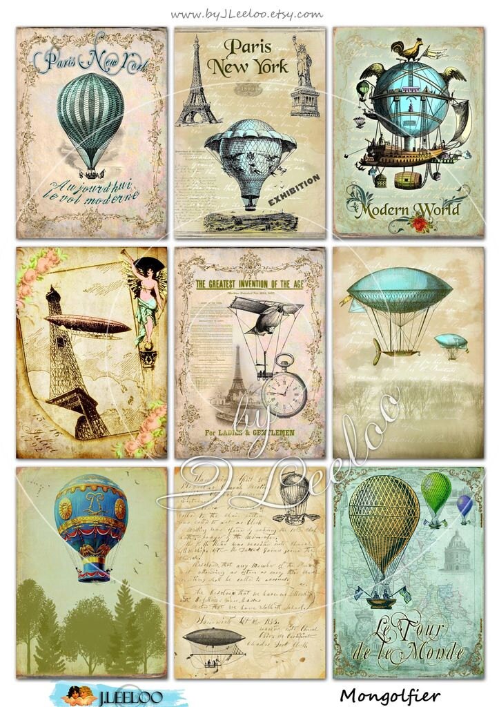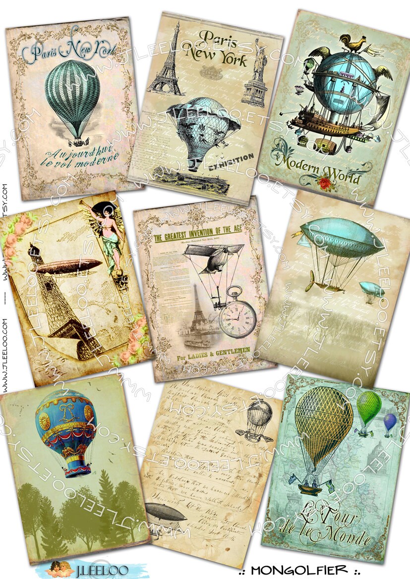MONGOLFIER Digital Download - Printable digital collage sheet - Paper for your artwork: scrapbook, diary art, hang tags, jewelry holders, invitations or annuncements, greetings cards or backing cards.... for your creativity!