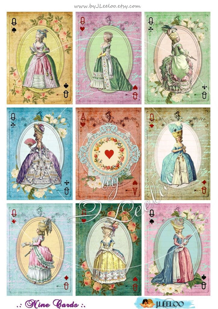 NINE CARDS - Printable digital collage sheet - Shabby chic papers for your artwork: aceo or atc cards, scrapbook, diary art, hang tags, jewelry holders, invitations or annuncements, greetings cards or backing cards.... for your creativity!