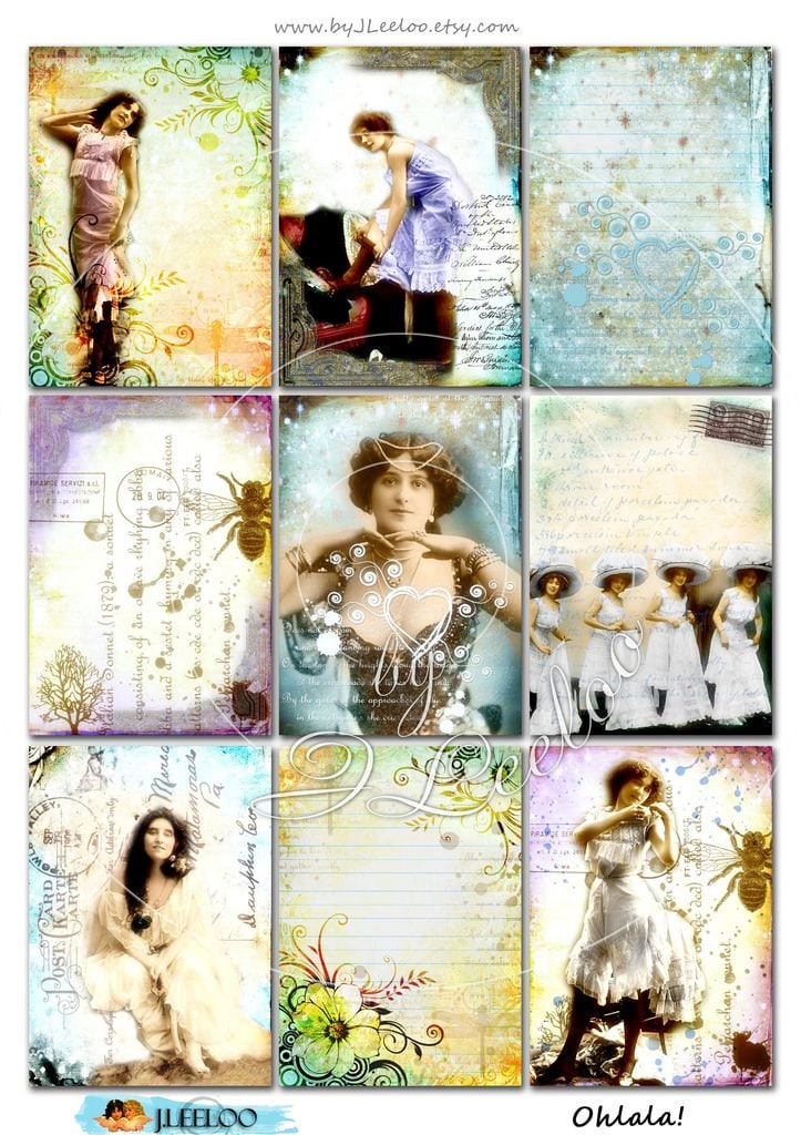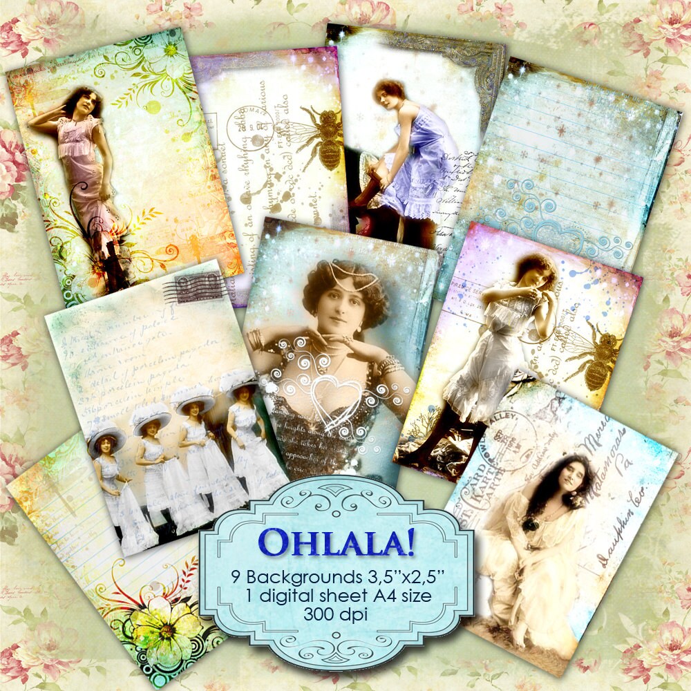 OHLALA! Digital collage sheet - Printable instant download paper for your artwork - scrapbook, diary art, hang tags, jewelry holders, invitations or annuncements, greetings cards or backing cards.... for your creativity!