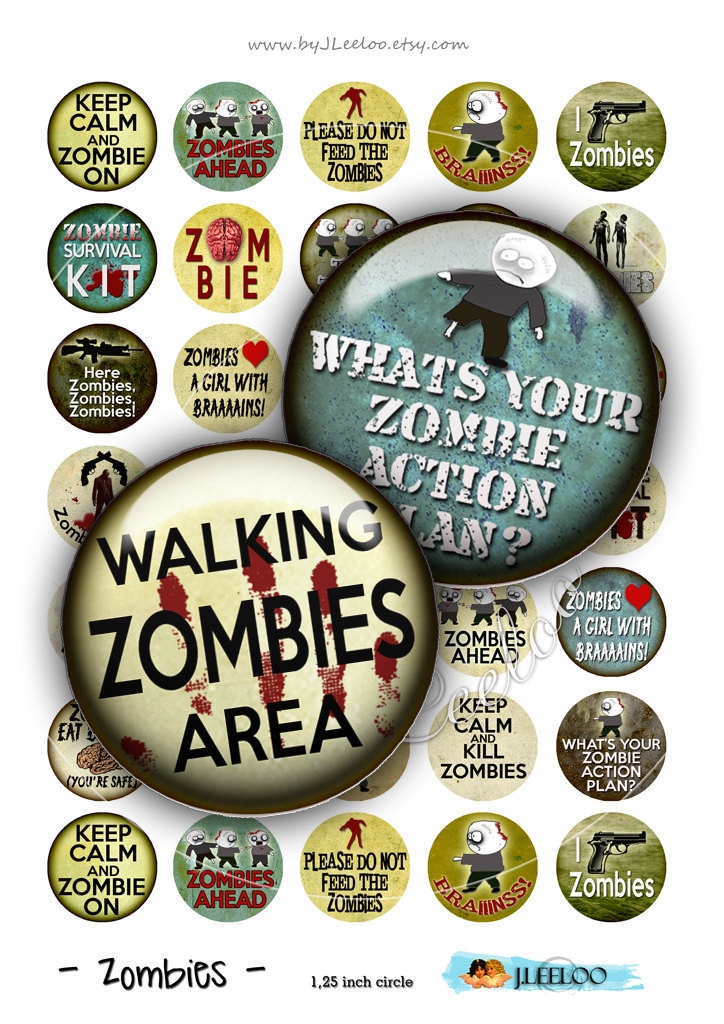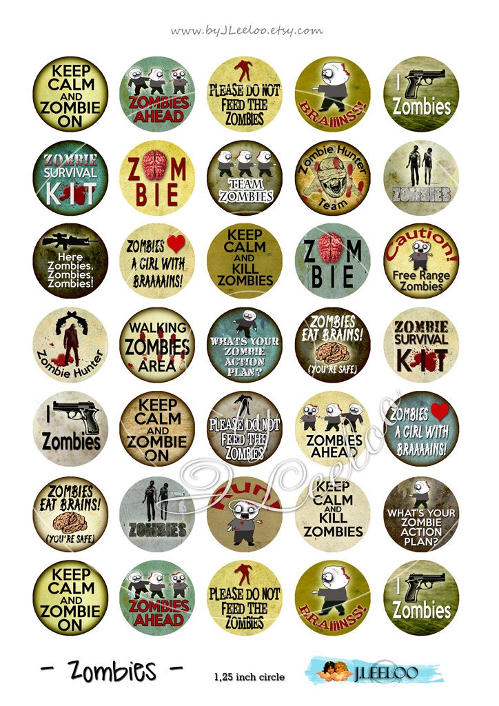 ZOMBIES Instant Download - Digital collage sheets - Circle printable images for jewelry, glass cabochons, bottle caps, stickers, hang tags and all your artwork.