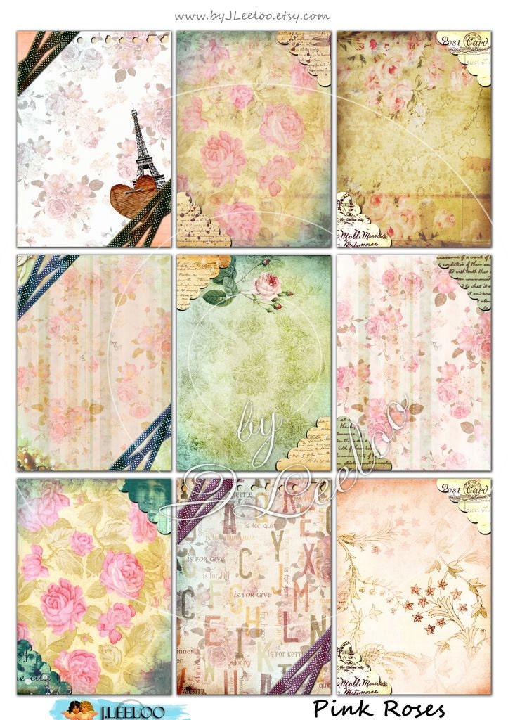 PINK ROSES Digital Download - Printable digital collage sheet - Paper for your artwork: scrapbook, diary art, hang tags, jewelry holders, invitations or annuncements, greetings cards or backing cards.... for your creativity!