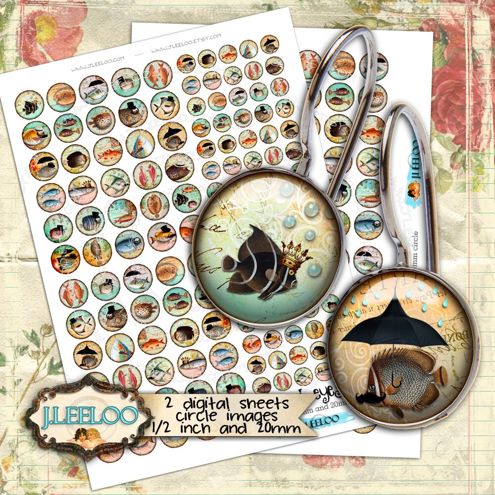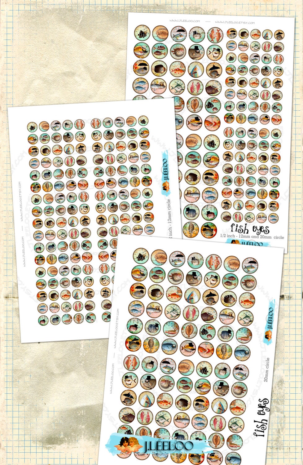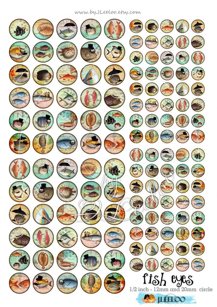 FISH EYES - Digital collage sheets - Circles images instant download ready to print for your jewelry making, resin pendants, rings, earrings and button, for magnets, stickers, scrapbook and your others craft project.