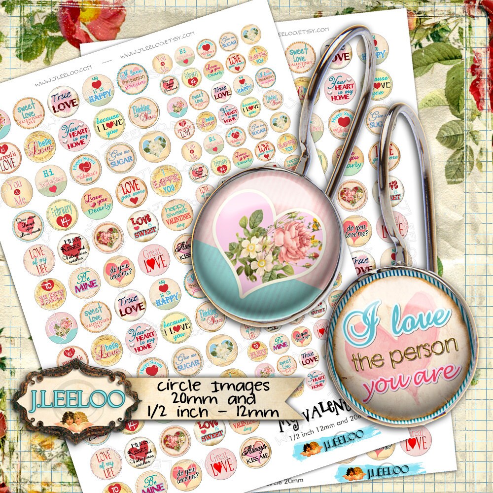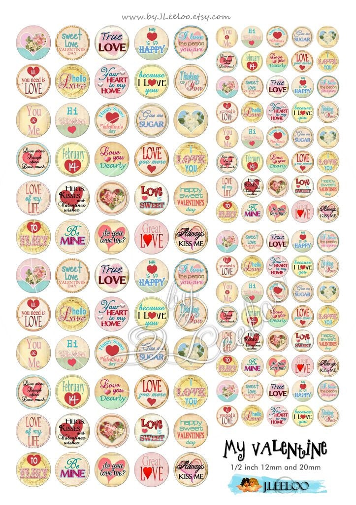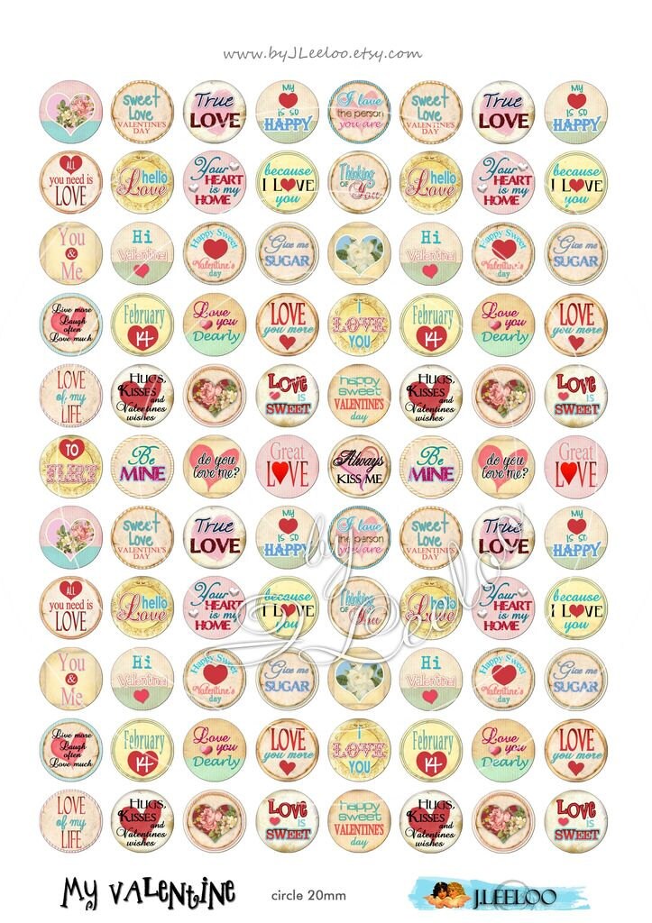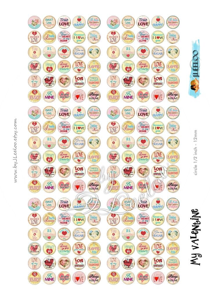 MY VALENTINE - Digital collage sheets - Circles images instant download ready to print for your jewelry making, resin pendants, rings, earrings and button, for magnets, stickers, scrapbook and your others craft project.