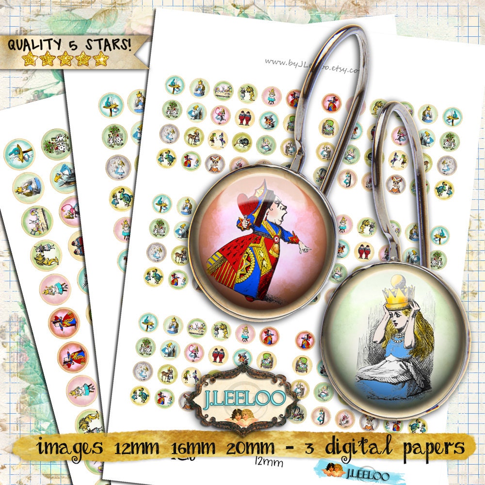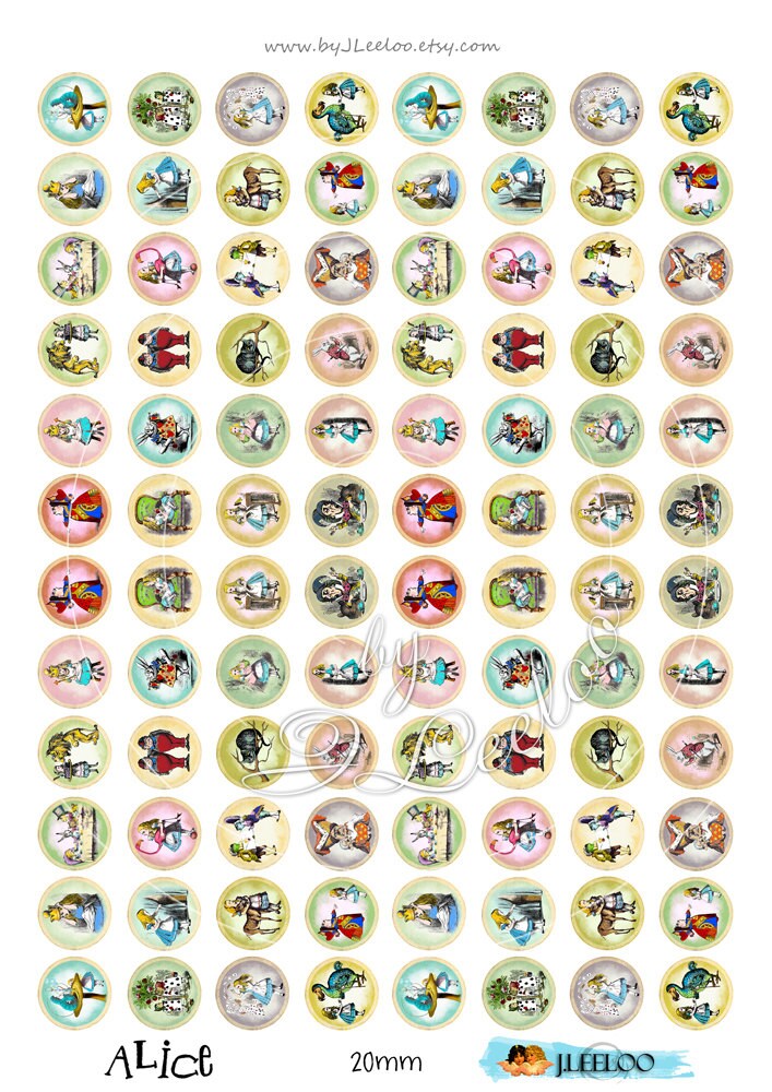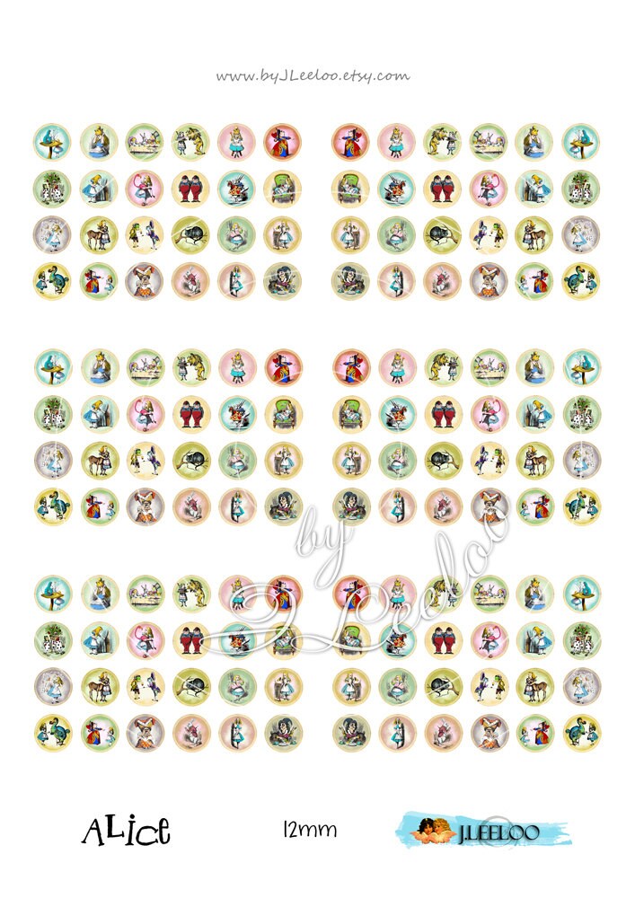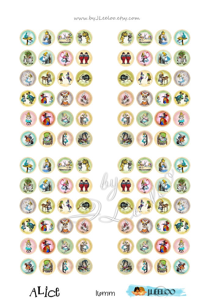 ALICE - Digital collage sheets - Circles images instant download ready to print for your jewelry making, resin pendants, rings, earrings and button, for magnets, stickers, scrapbook and your others craft project.