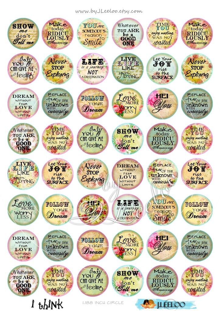 I Think - Instant download printable - digital collage sheets - circle quote images for your crafting project - glass cabochons, jewelry, resin pendants, hang tags, rings, earrings and all your need for your art.
