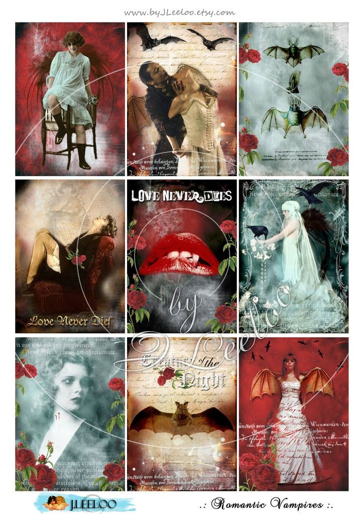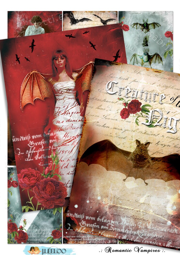 ROMANTIC VAMPIRES Digital collage sheet - Printable instant download paper for your artwork - scrapbook, diary art, hang tags, jewelry holders, invitations or annuncements, greetings cards or backing cards.... for your creativity!