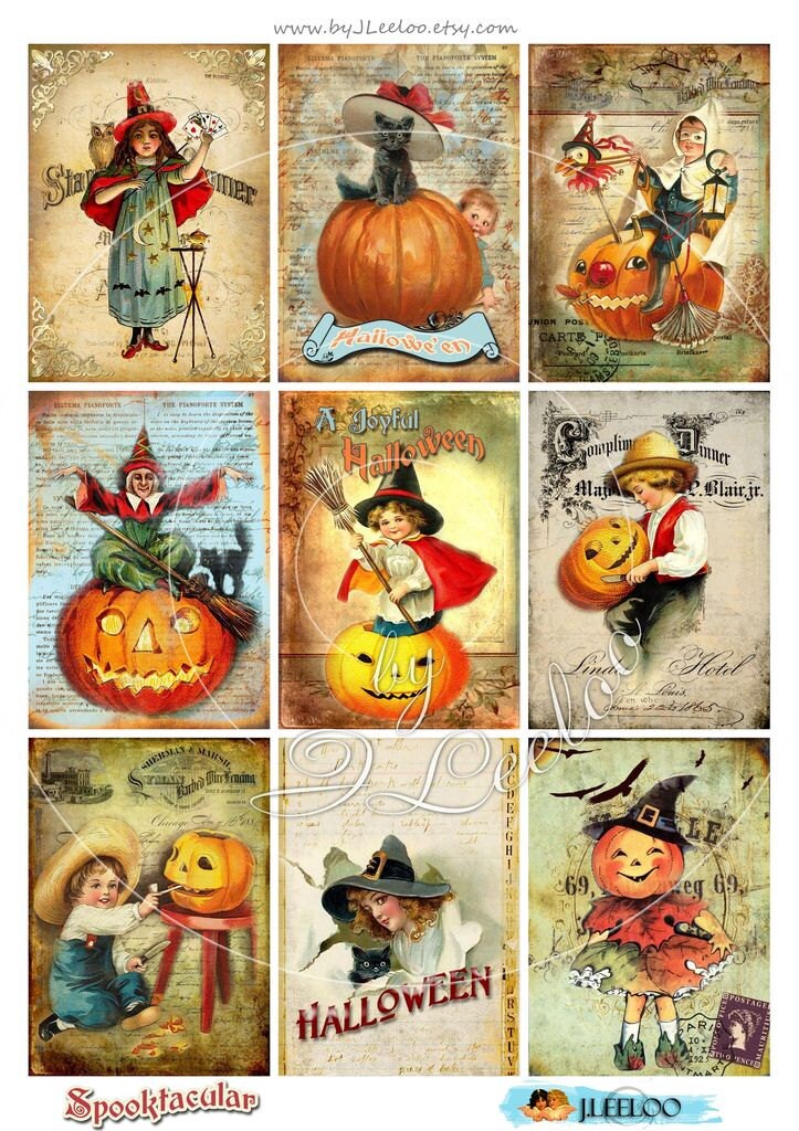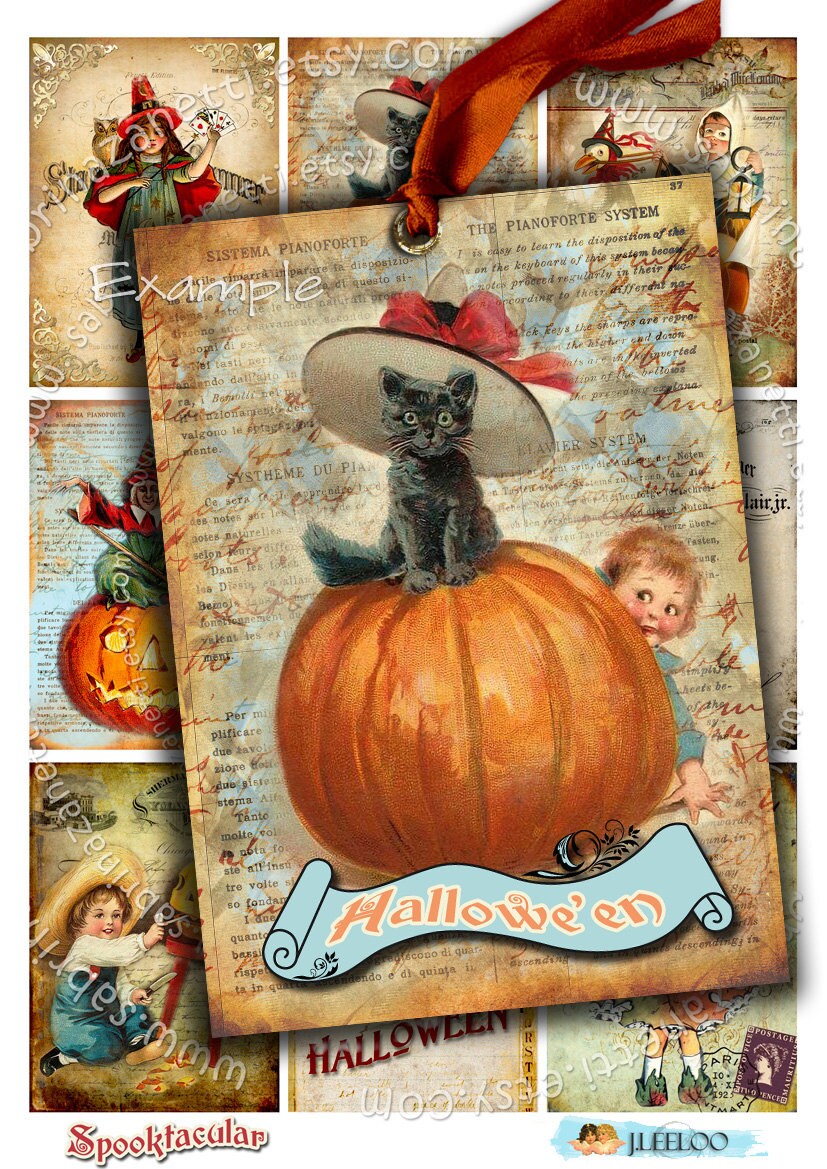 SPOOKTACULAR Digital collage sheet - Halooween printable instant download paper for your artwork - scrapbook, diary art, hang tags, jewelry holders, invitations or annuncements, greetings cards or backing cards.... for your creativity!