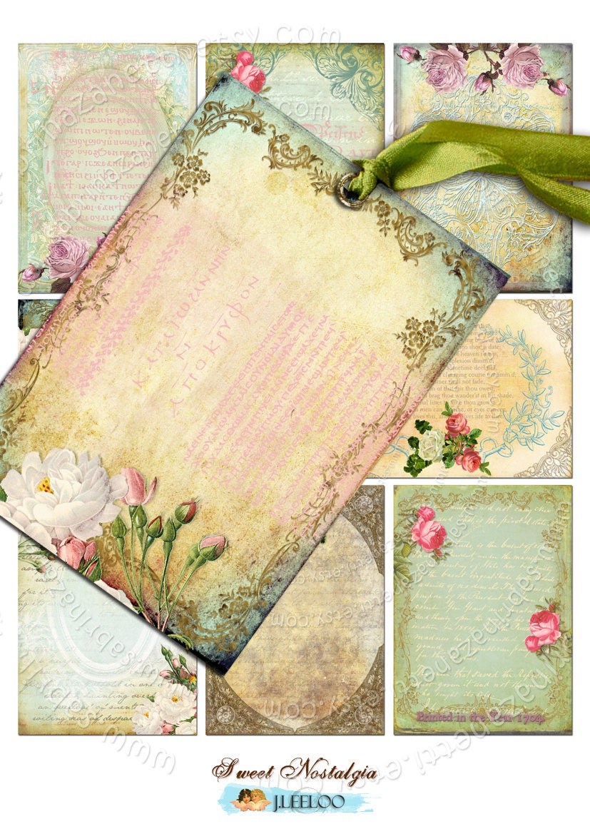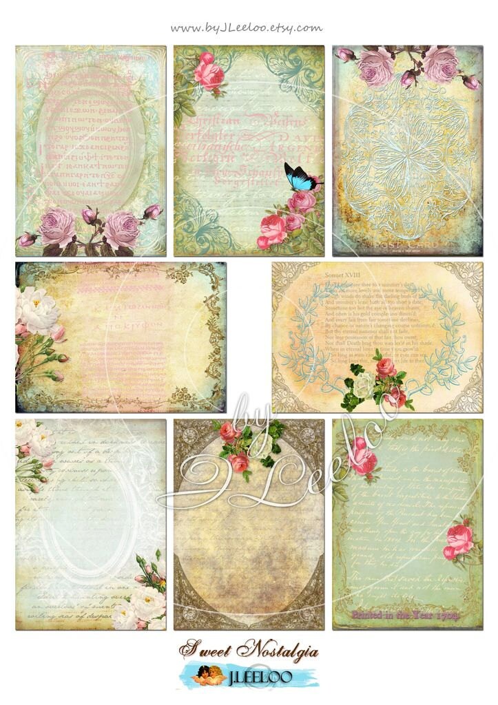 SWEET NOSTALGIA Digital Download - Printable digital collage sheet - Paper for your artwork: scrapbook, diary art, hang tags, jewelry holders, invitations or annuncements, greetings cards or backing cards.... for your creativity!