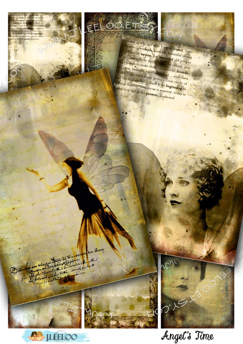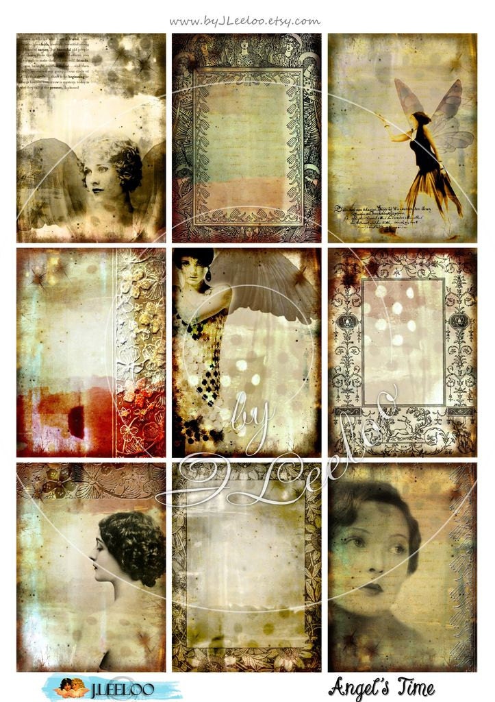 ANGEL'S TIME Digital collage sheet - Printable instant download paper for your artwork - scrapbook, diary art, hang tags, jewelry holders, invitations or annuncements, greetings cards or backing cards.... for your creativity!