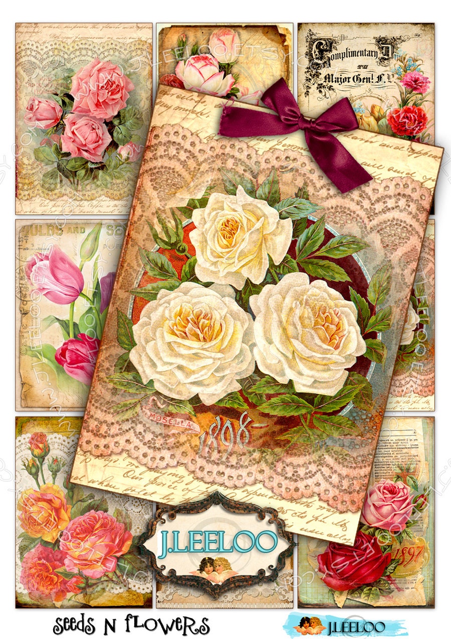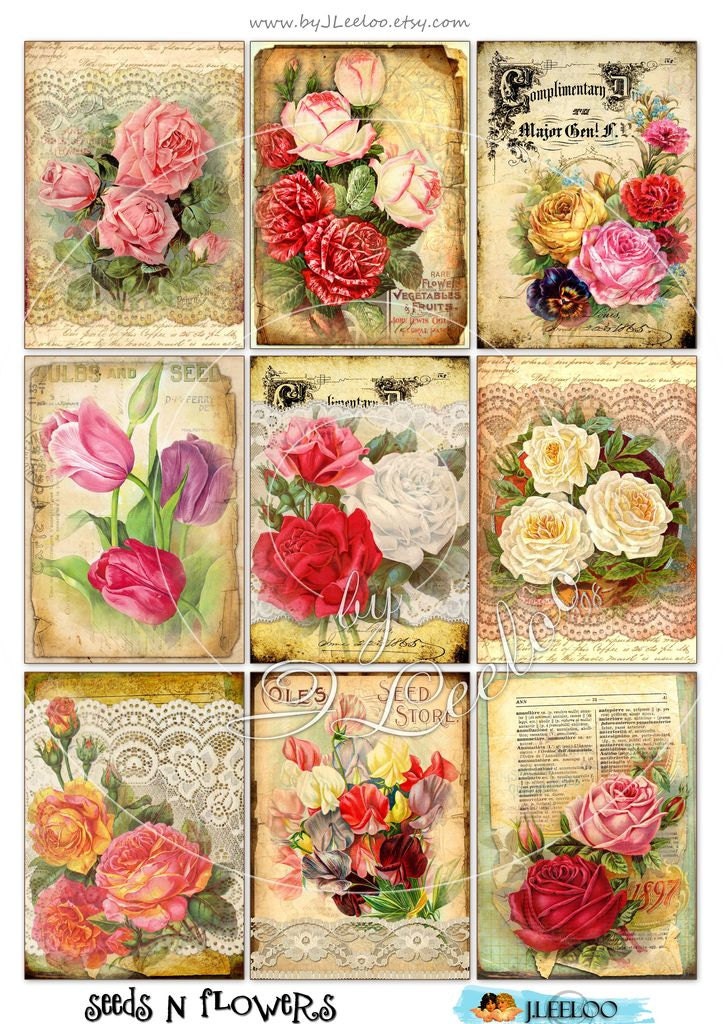 SEEDS AND FLOWERS Digital collage sheet - Printable instant download paper for your artwork - scrapbook, diary art, hang tags, jewelry holders, invitations or annuncements, greetings cards or backing cards.... for your creativity!