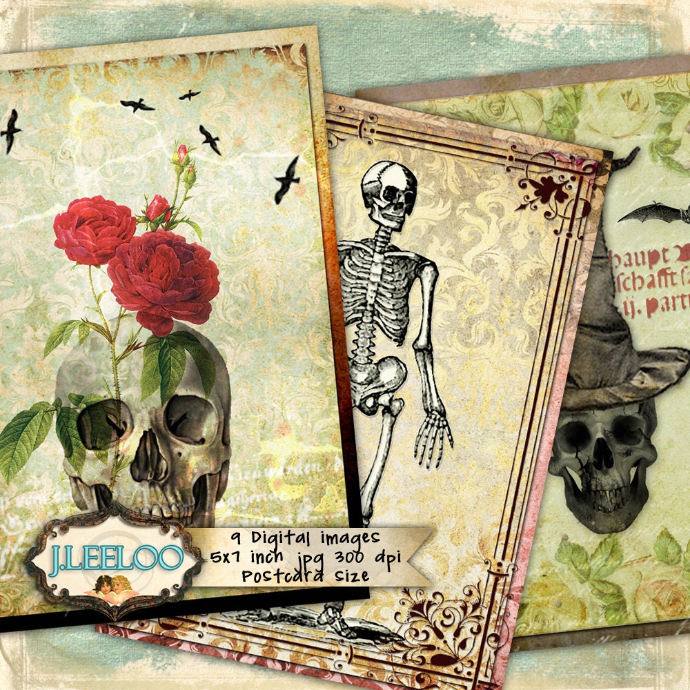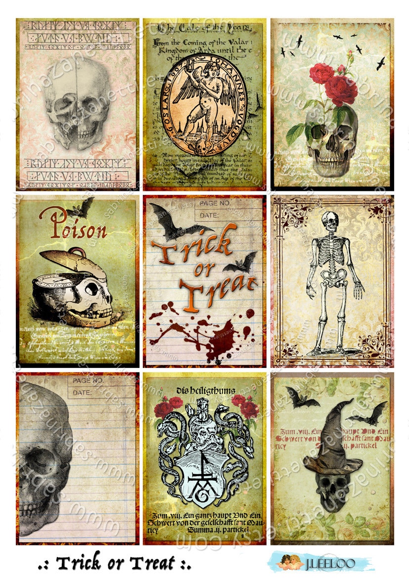 TRICK OR TREAT Digital collage sheet - Halooween postcards printable instant download paper for your artwork - scrapbook, diary art, hang tags, jewelry holders, invitations or annuncements, greetings cards or backing cards.... for your creativity!