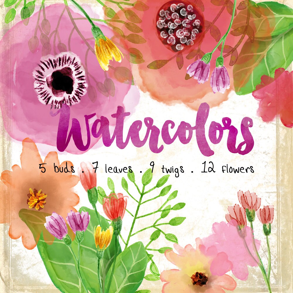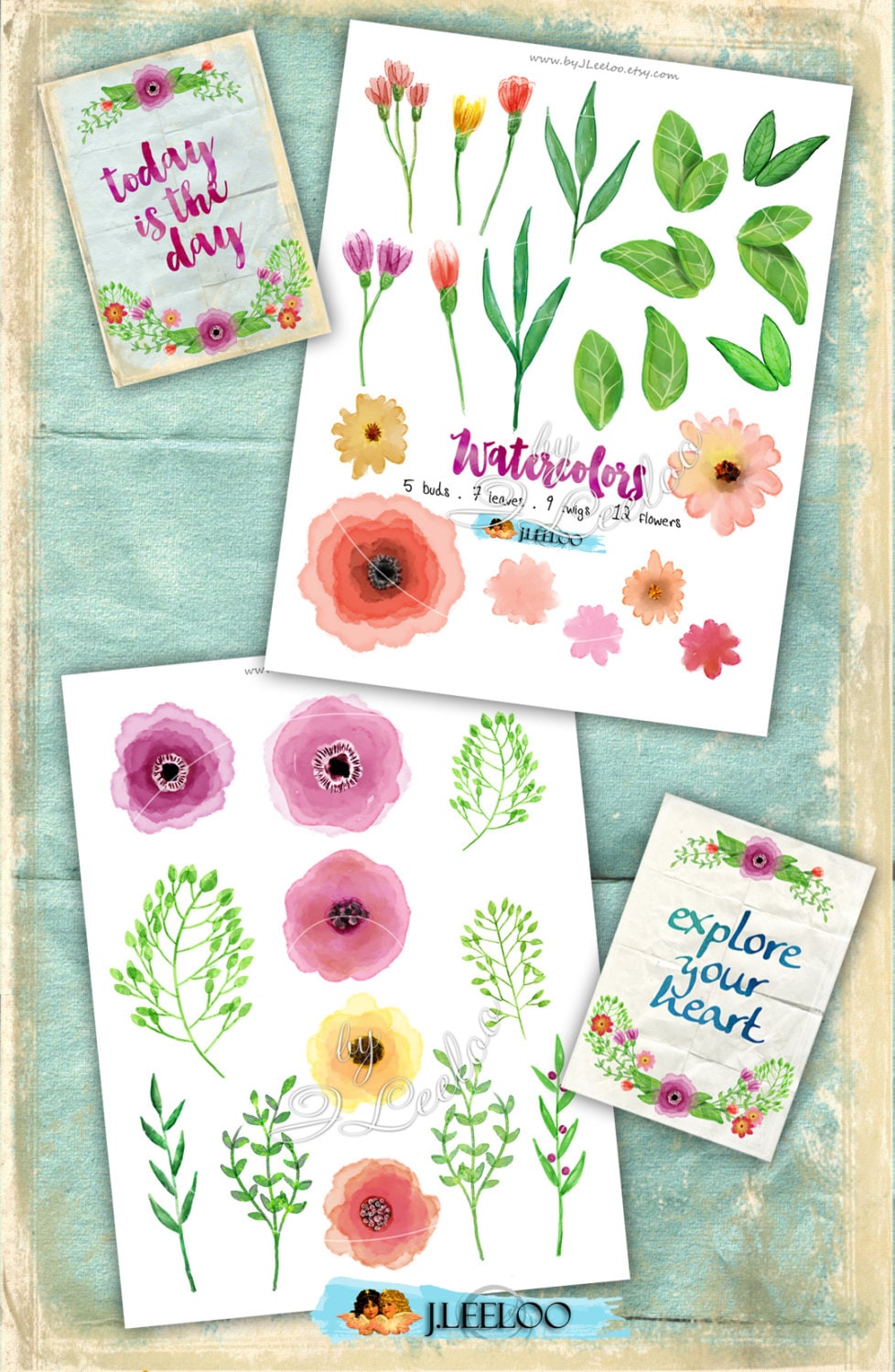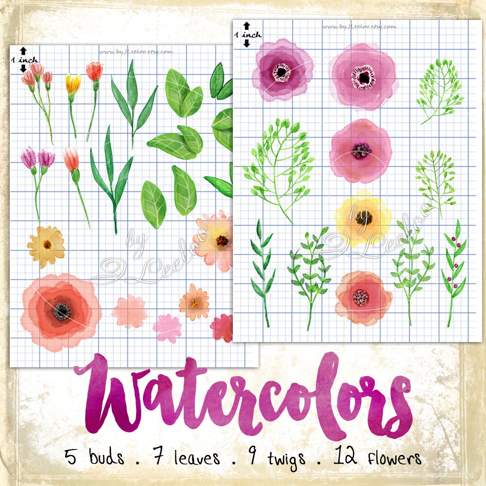 WATERCOLORS - Digital set of images in high quality hand painted watercolor floral - Png and jpeg for your crafting project - Download to print for wedding invitations, greeting cards, photos, posters, quotes and scrapbooks.... a great supply for your artwork.