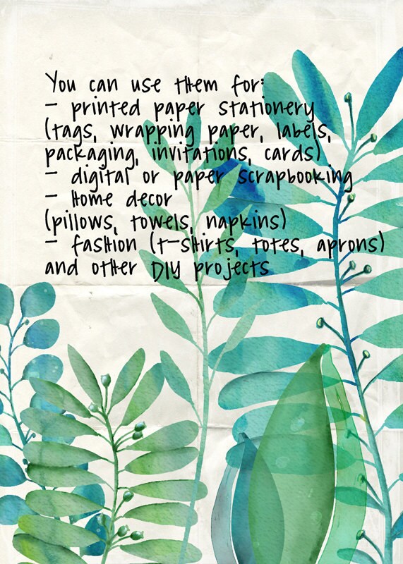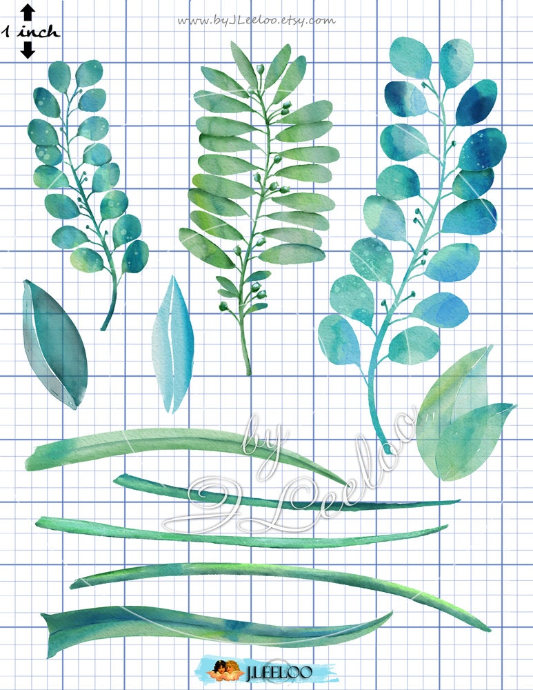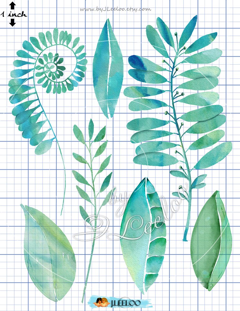JUNGLE - Digital set of images in high quality hand painted watercolor floral - Png and jpeg for your crafting project - Download to print for wedding invitations, greeting cards, photos, posters, quotes and scrapbooks.... a great supply for your artwork.
