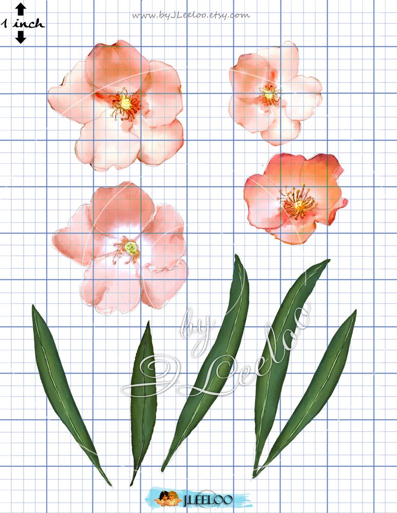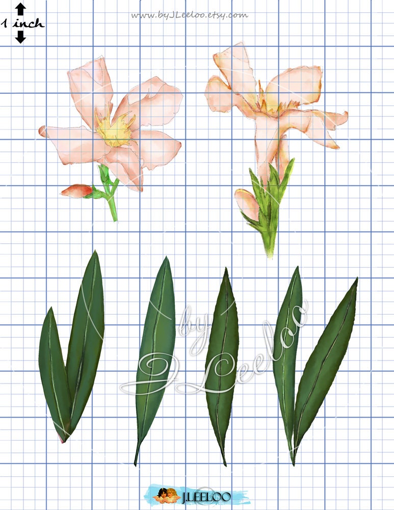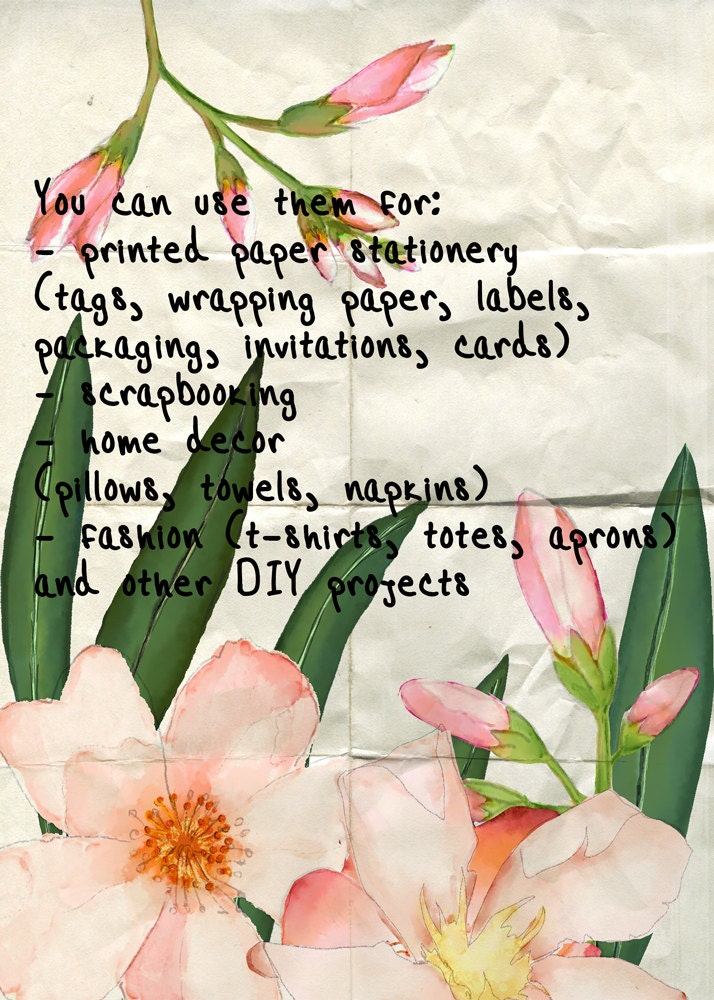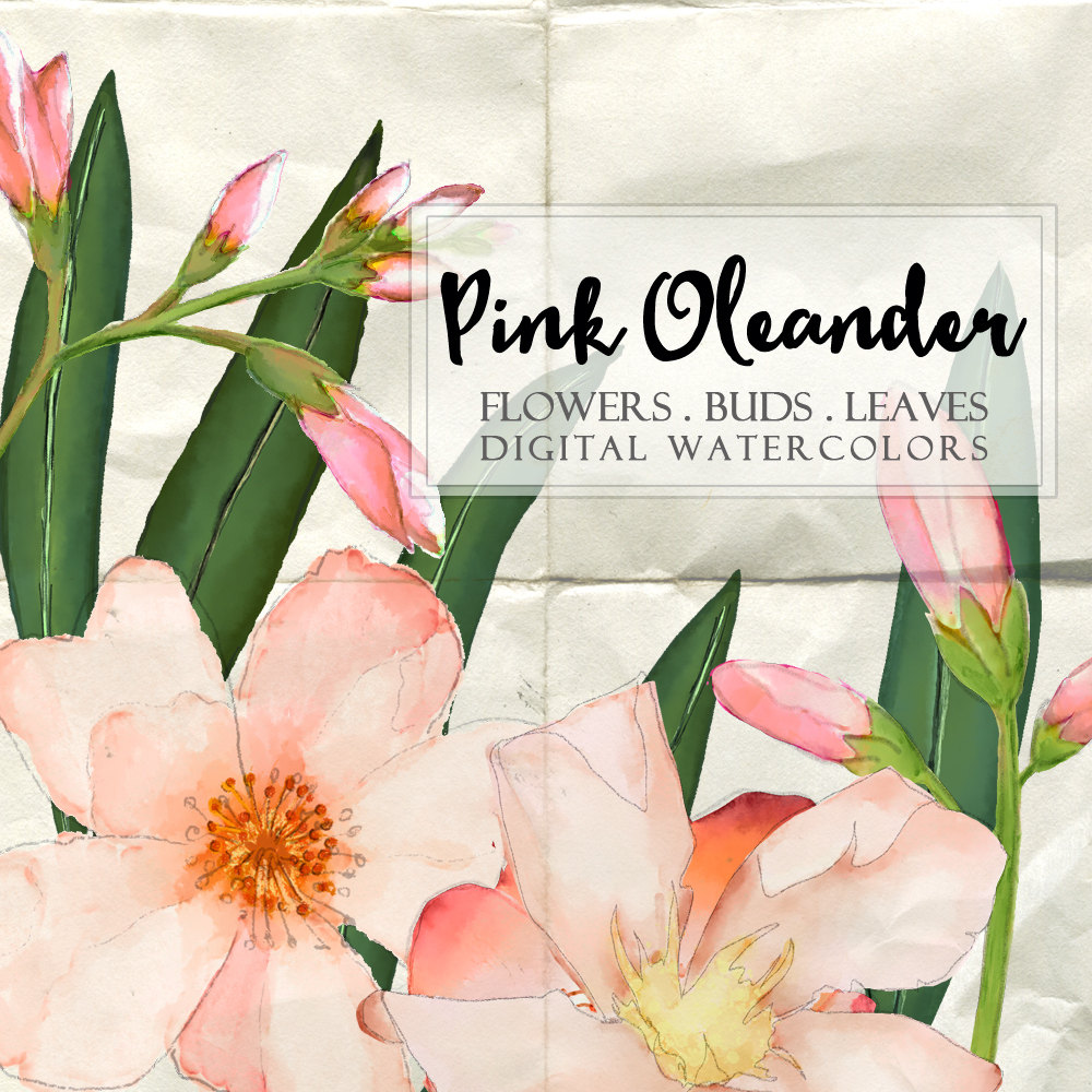 WATERCOLORS PINK OLEANDER - Digital set of images in high quality hand painted watercolor floral - Png and jpeg for your crafting project - Download to print for wedding invitations, greeting cards, photos, posters, quotes and scrapbooks.... a great supply for your artwork.