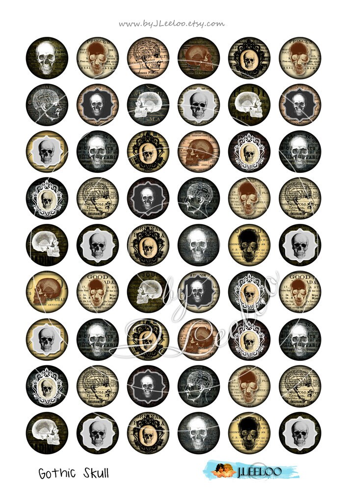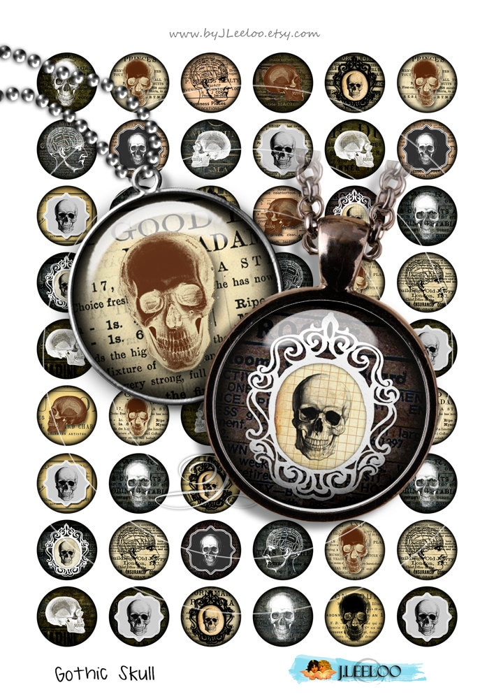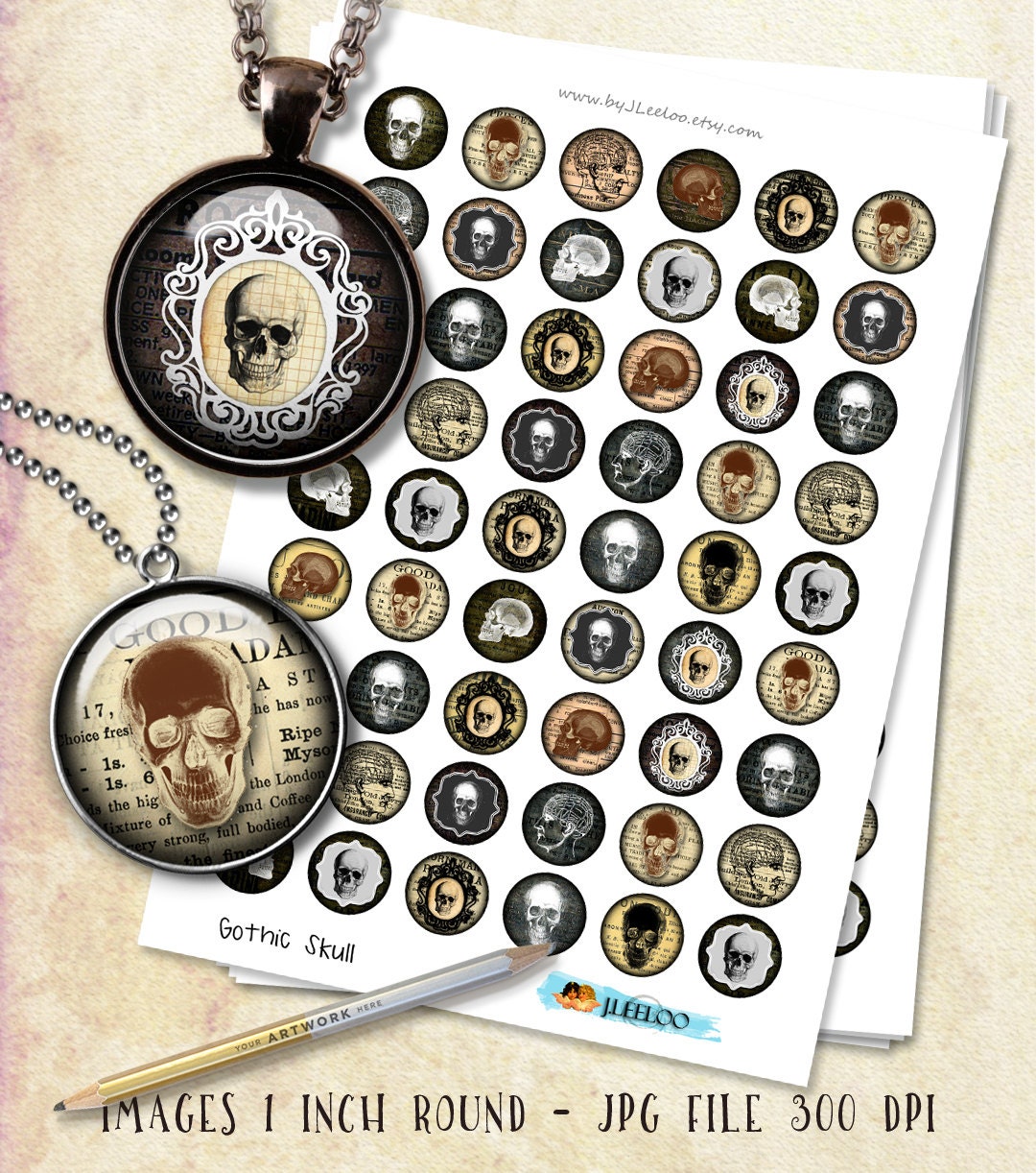 THE SKULL - Instant Download - Digital paper printable - Digital collage sheet circle digital images for pendants, jewelry and your craft and artwork.