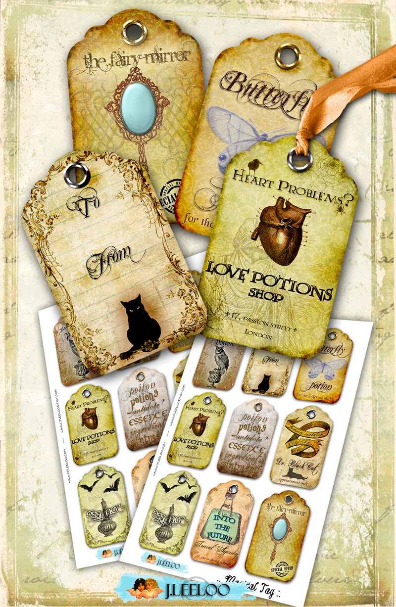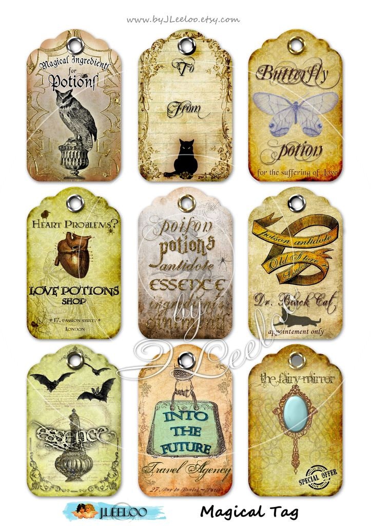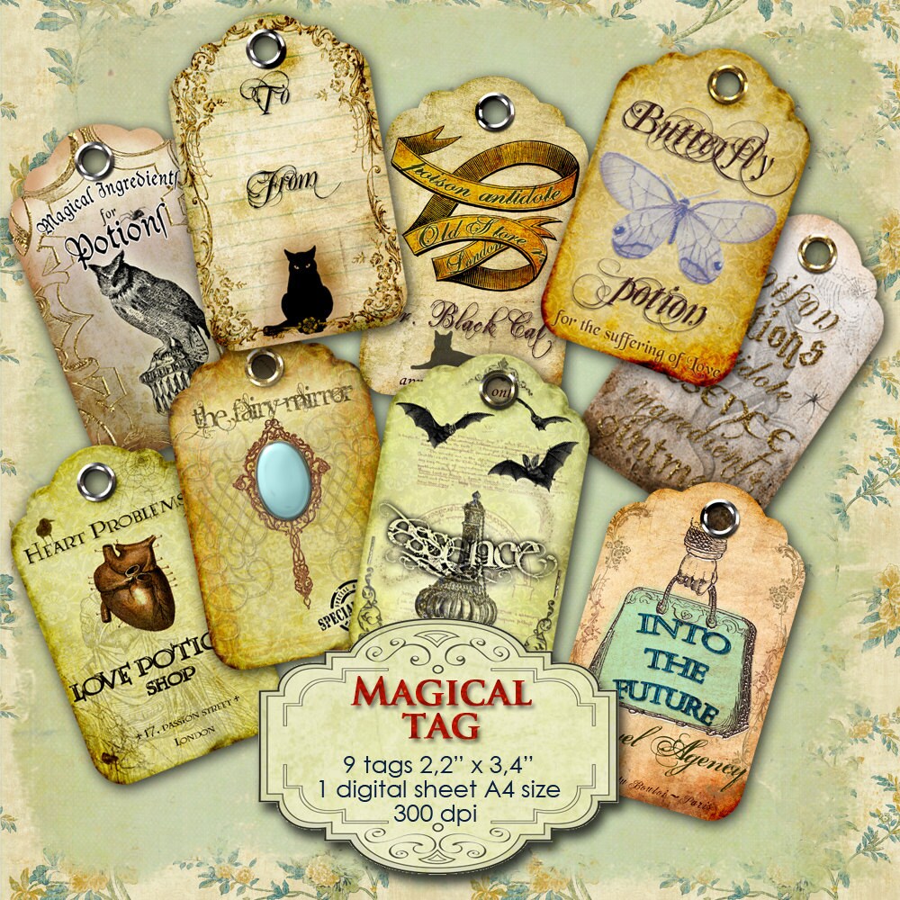 MAGICAL TAG - Digital collage sheets: download and print for hang tags, labels, scrapbook, jewelry holders, cards, and your others craft project.