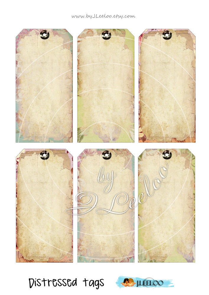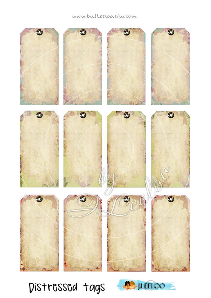 DISTRESSED TAGS - Digital collage sheets: download and print for hang tags, labels, scrapbook, jewelry holders, cards, and your others craft project.