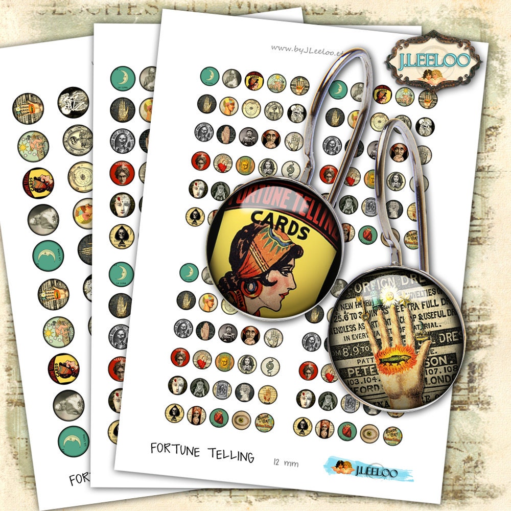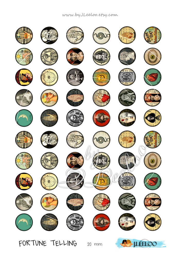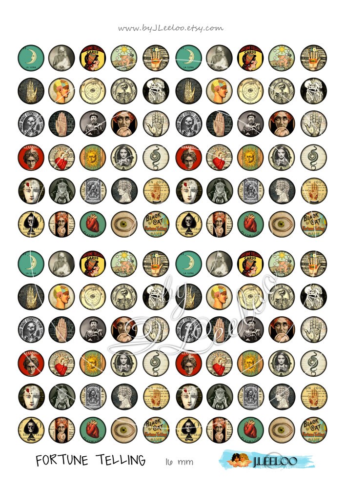 FORTUNE TELLER - Digital collage sheets - Circles images instant download ready to print for your jewelry making, bracelets, resin pendants, rings, earrings and button, for magnets, stickers, scrapbook and your others craft project.