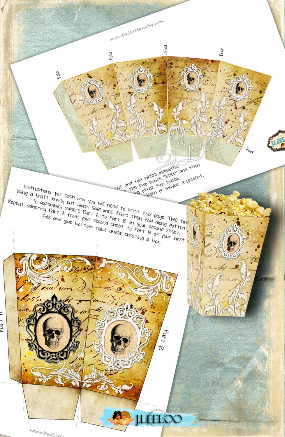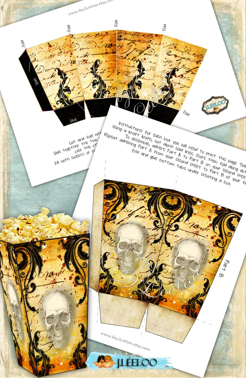 SKULL 'n POPCORN - Digital images for your crafting project - Download to print for halloween party, movie marathon, scary invitations, journaling, hang tags, card making, collages... a great supply for your artwork.