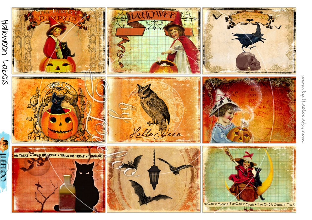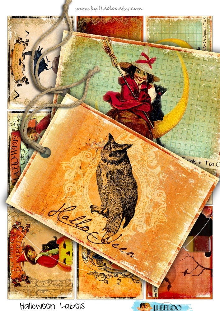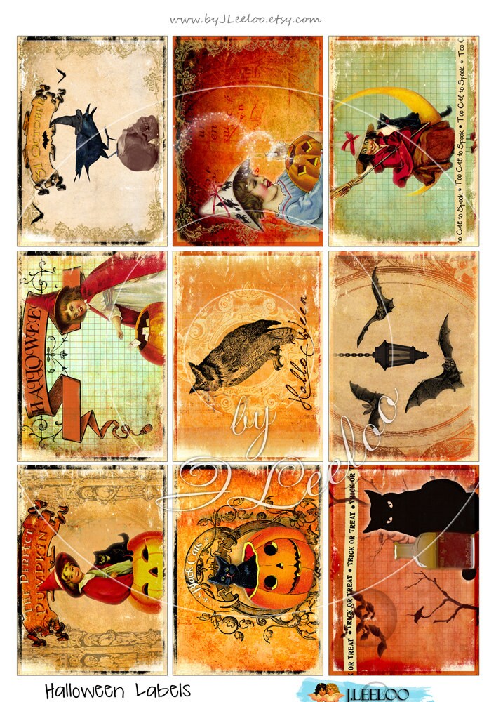 HALLOWEEN PARTY Digital collage sheet - Printable instant download paper for your artwork - scrapbook, diary art, hang tags, jewelry holders, invitations or annuncements, greetings cards or backing cards.... for your creativity!