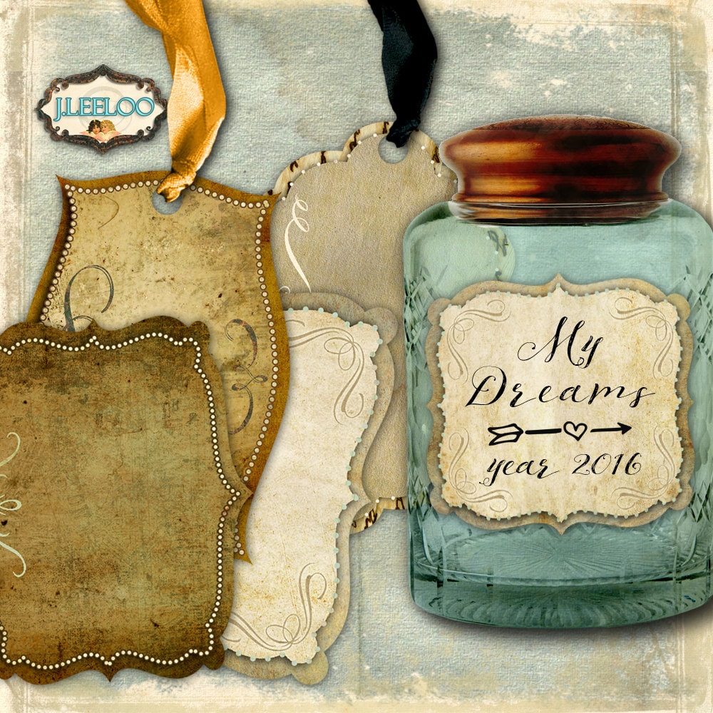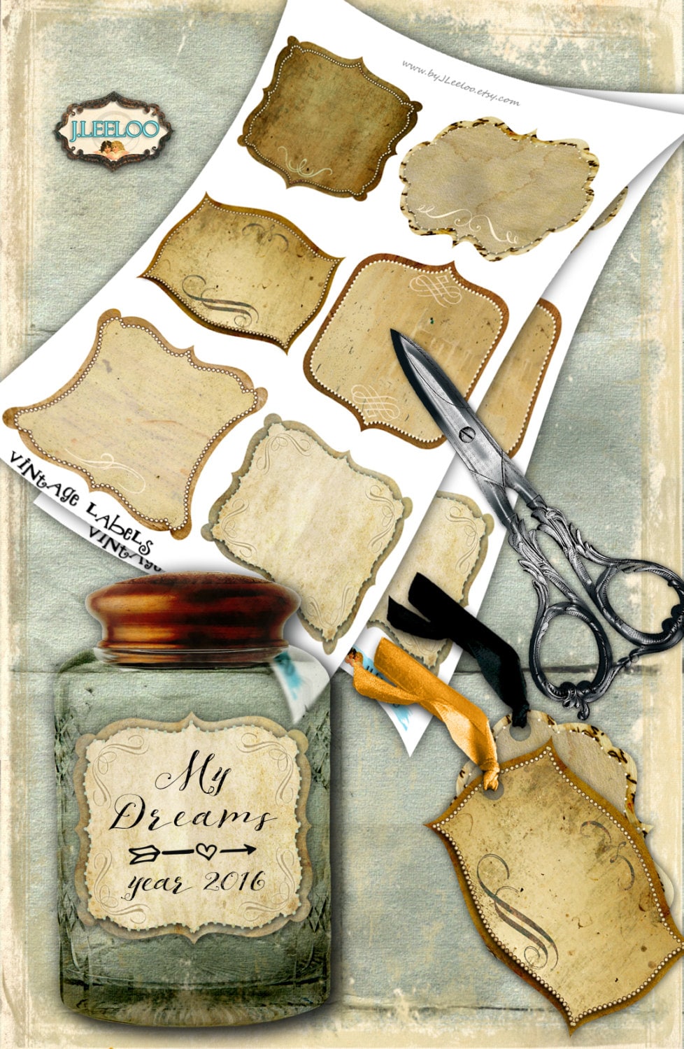 VINTAGE LABEL - Digital collage sheets: download and print blank labels writable for jar scrapbook paper craft and your others craft project.