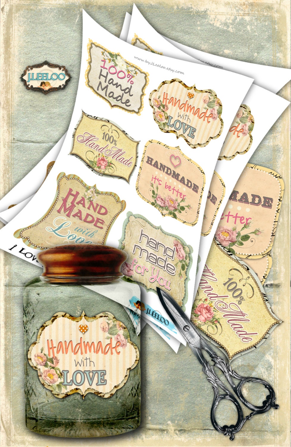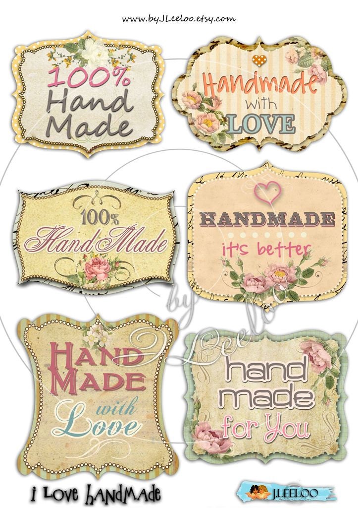 I LOVE HANDMADE label printable - Digital collage sheet paper craft gift tags greeting card scrapbook paper craft and your others craft project.
