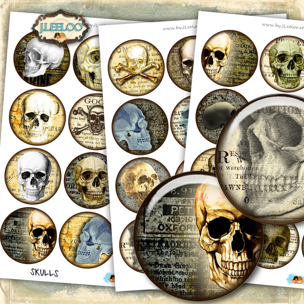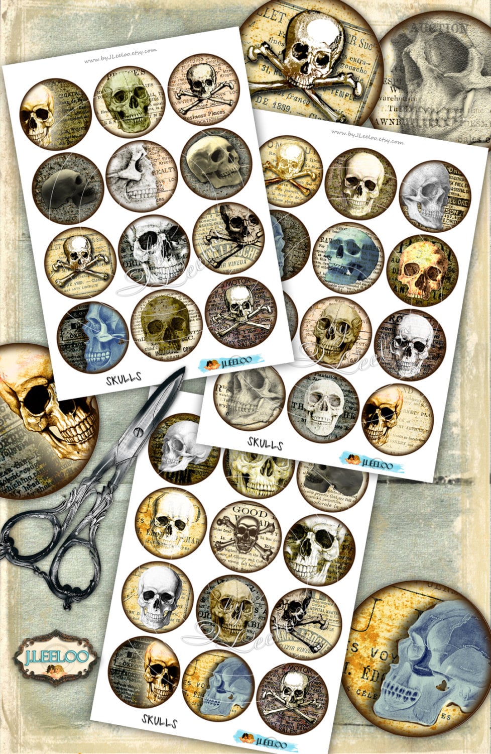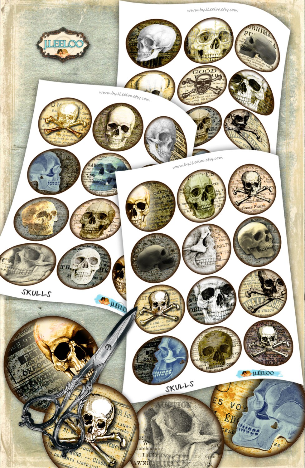 GOTHIC SKULL - Instant Download - Digital paper printable - Digital collage sheet circle digital images for printable for halloween invitations pocket mirrors cupcake topper scrapbook magnets and all your art!