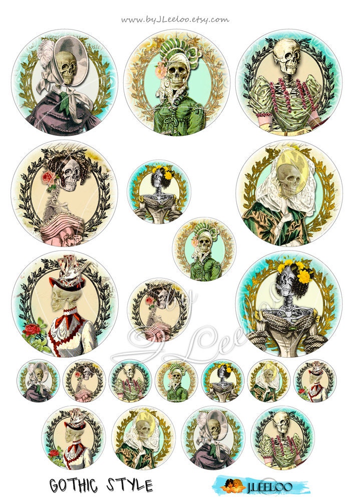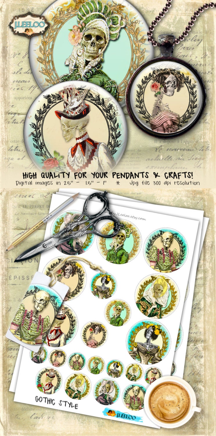 GOTHIC STYLE digital collage sheet 2.5 - 1.5 - 1 inch circle for goth scary regency halloween pendant craft magnet cupcake topper gift tag, jewelry and your craft and artwork.
