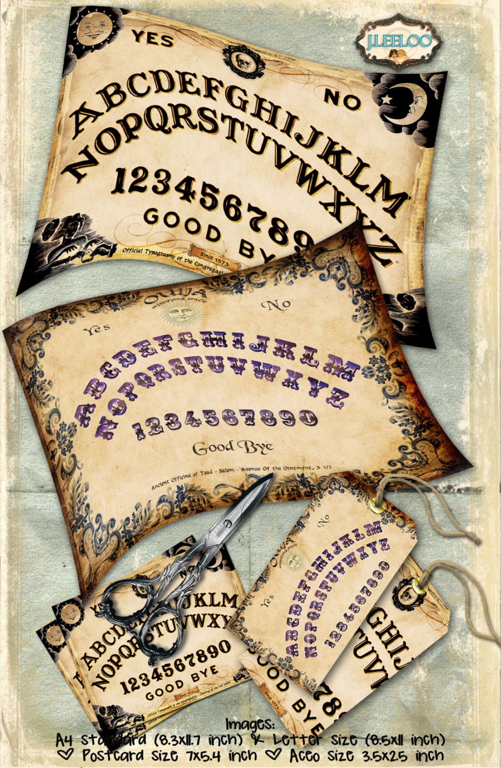 OUIJA BOARD halloween spirit talking gothic - large 3 size printable instant download papers for your artwork - scrapbook, diary art, hang tags, jewelry holders, invitations or annuncements, greetings cards or backing cards.... for your creativity!