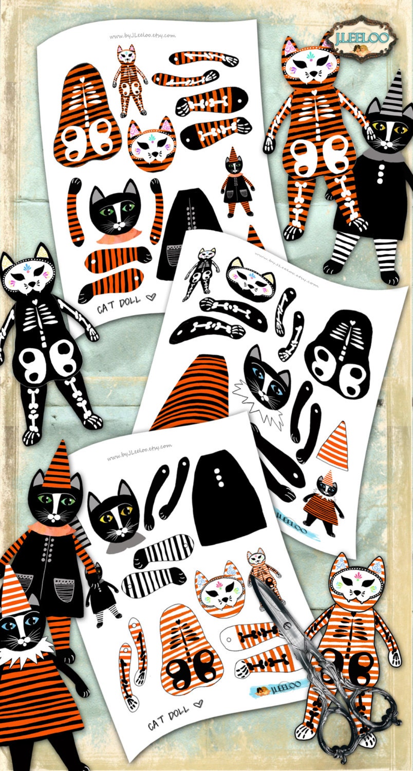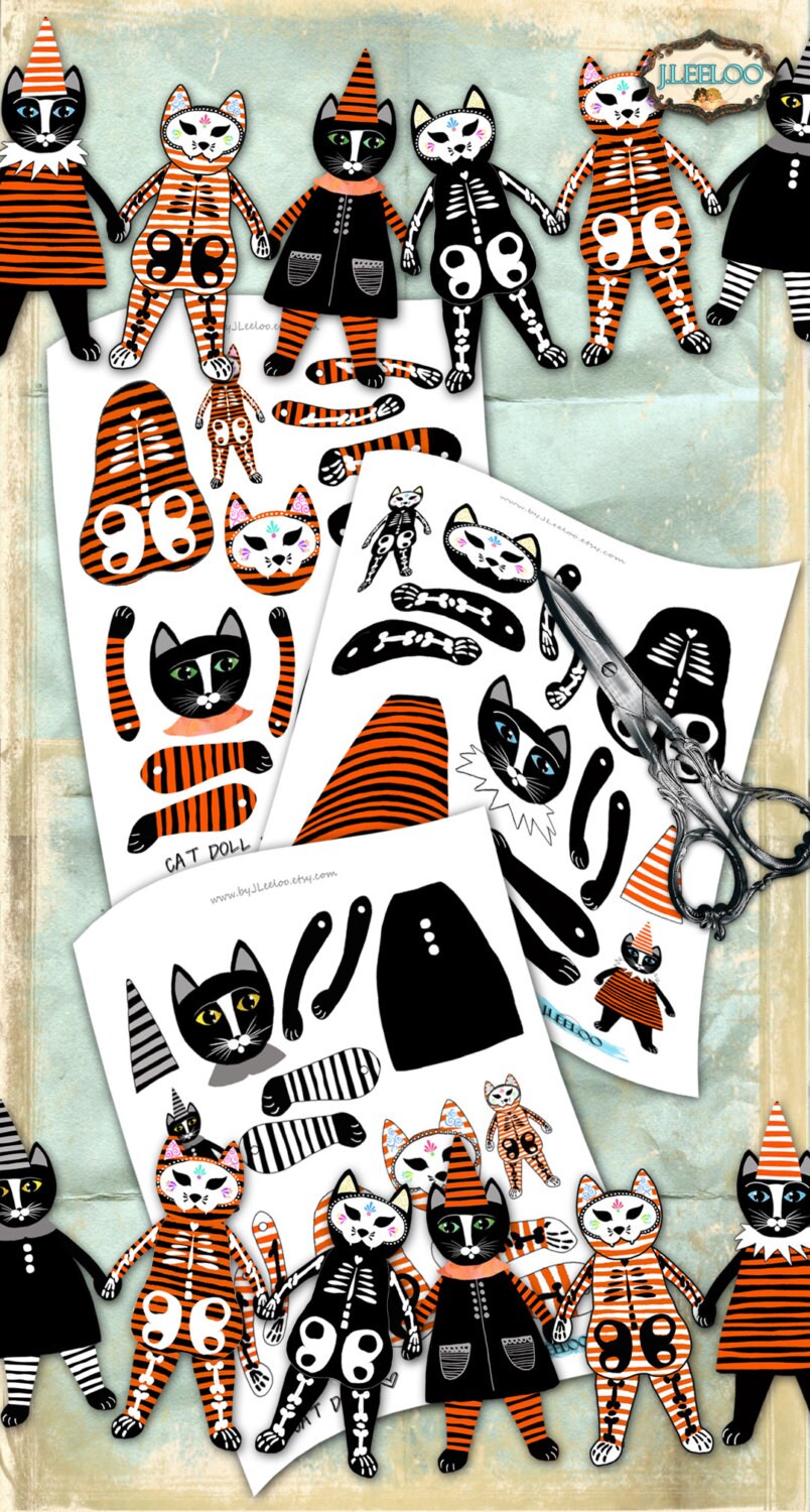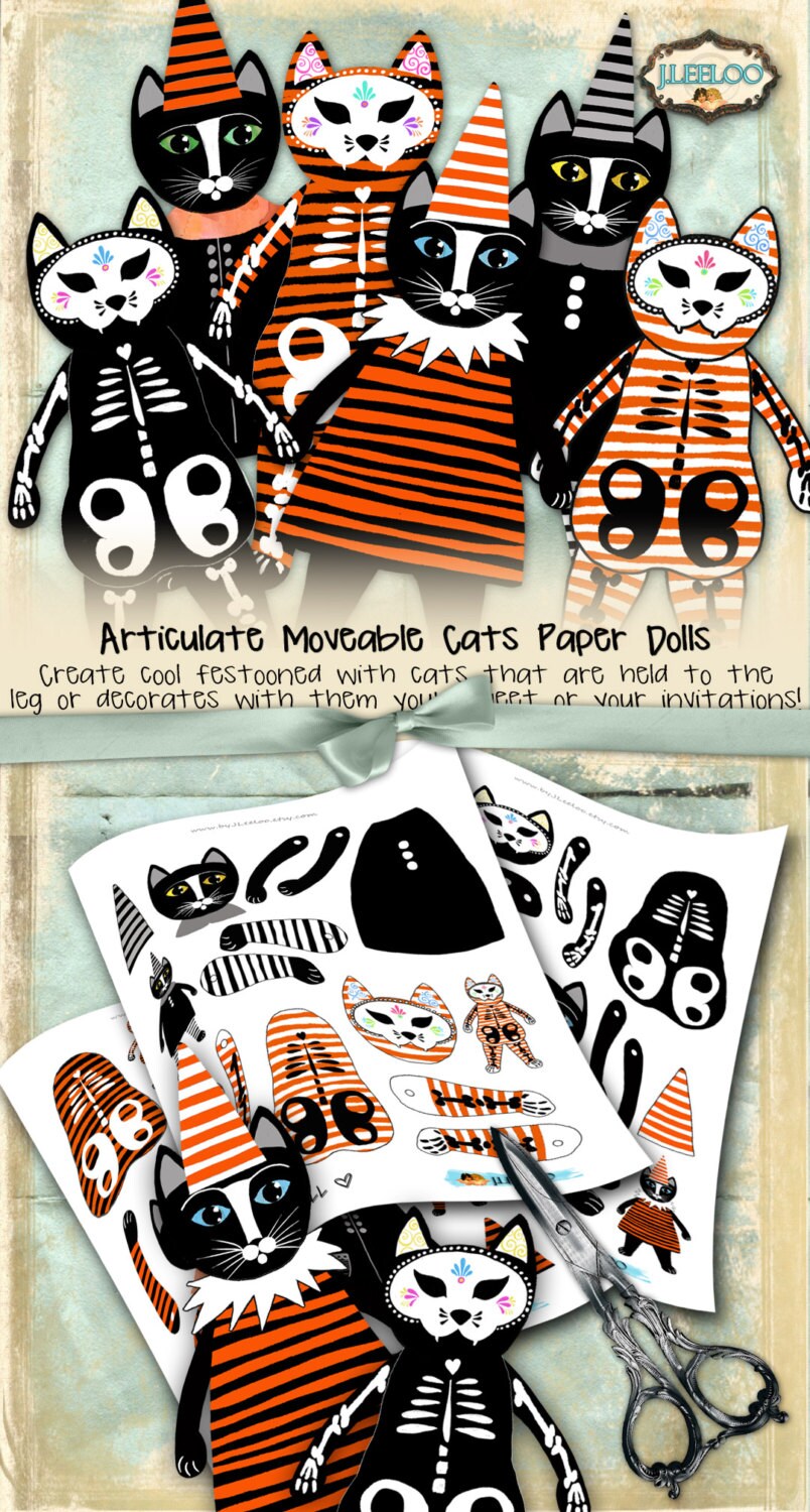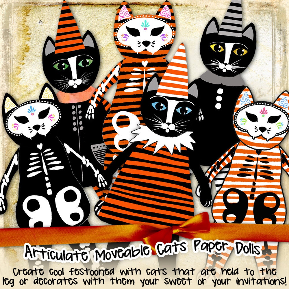Create a moveable cat paper dolls for your Halloween with these digital sheets! Create cool festooned with cats that are held to the leg or decorates them with your sweet or your invitations! These articulated cats are hand-drawn by me... I hope that they will be cute as they are to me!