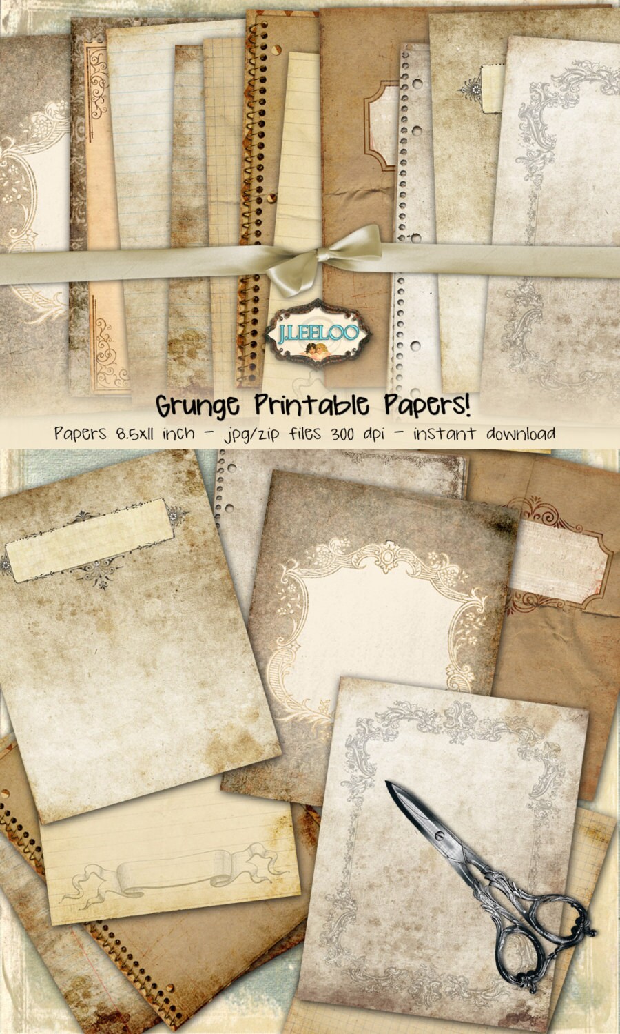 GRUNGE PAPERS Instant Download - Vintage Junk Journal dgital collage sheets ledger dirty vintage scrapbook distressed printable diary