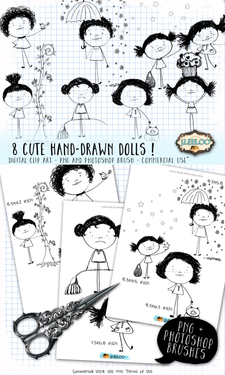 DOODLE FRAMES - Hand Drawn digital shabby chic images for your crafting project - Digital Clip Art Printable adorable whimsical Commercial Use PNG & Photoshop Brush invitation label Hand Drawn... a great supply for your artwork.