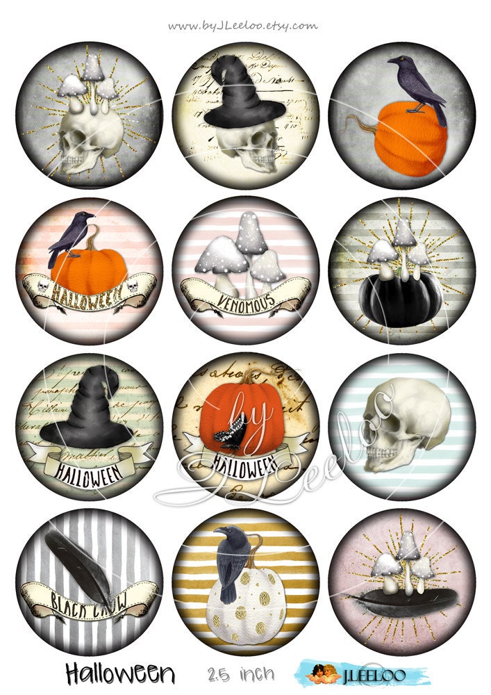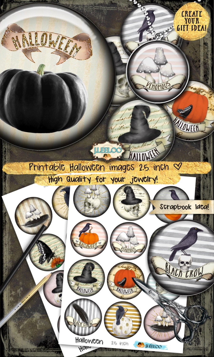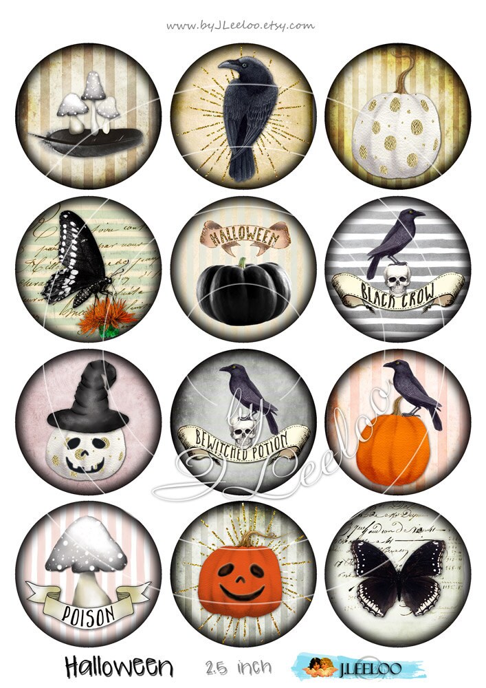 Halloween - Instant download printable - digital collage sheets - circle images for your crafting project - glass cabochons, jewelry, resin pendants, hang tags, rings, earrings and all your need for your art.