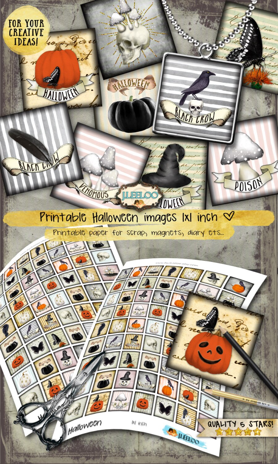 Halloween - Instant download printable - digital collage sheet - square images for your crafting project - glass cabochons, jewelry, resin pendants, hang tags, rings, earrings and all your need for your art.