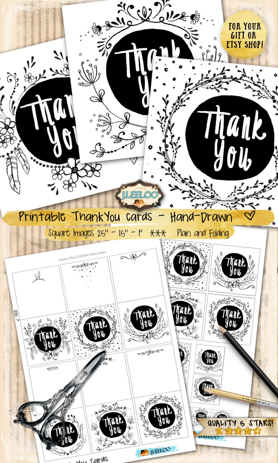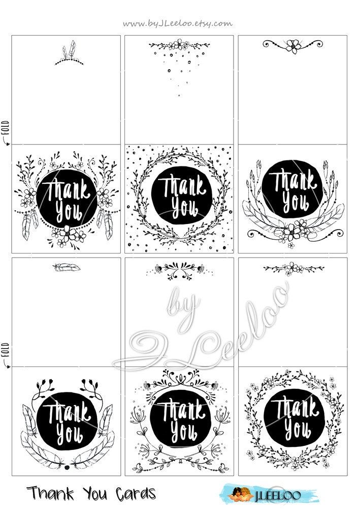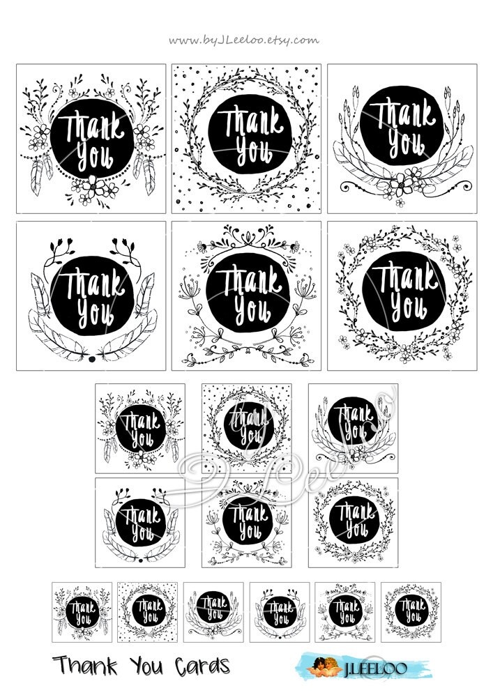 THANK YOU card - Digital collage sheets Images hand-drawn - download and print for gift tag hang tags, labels, scrapbook, jewelry holders, cards, and your others craft project.