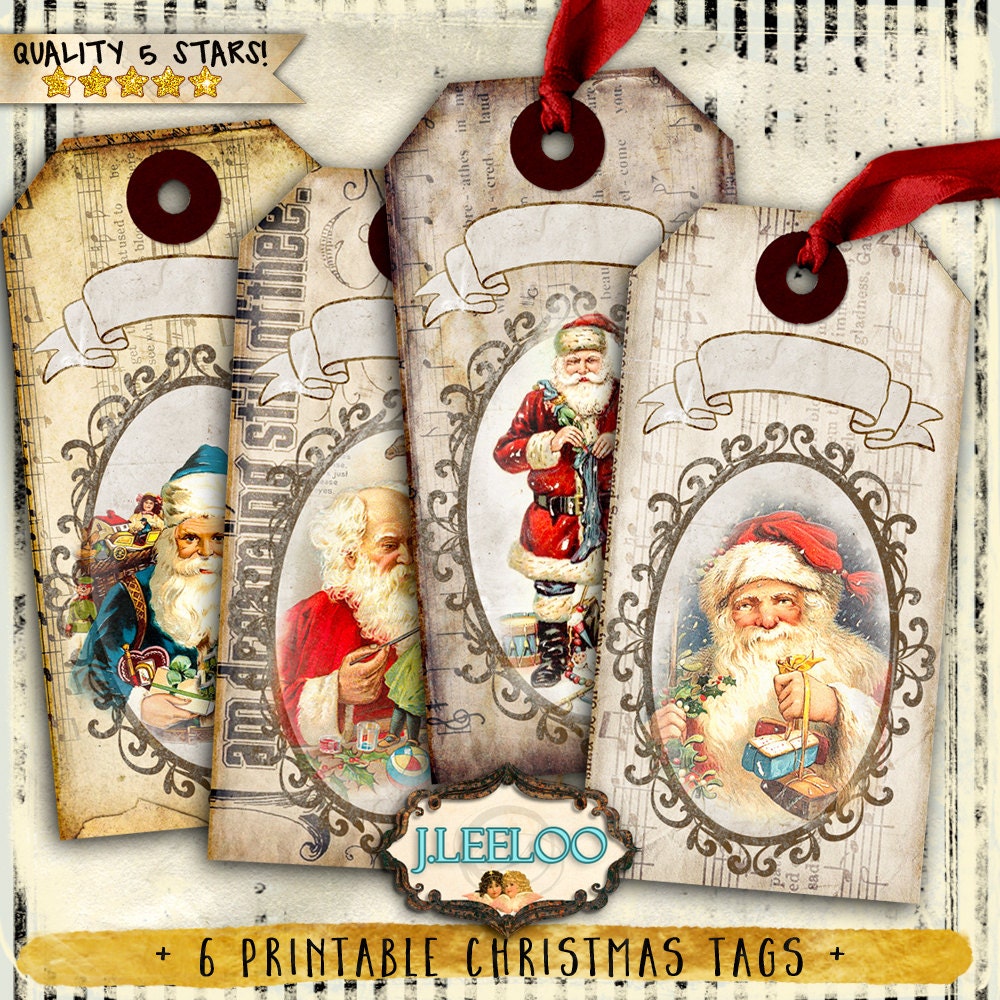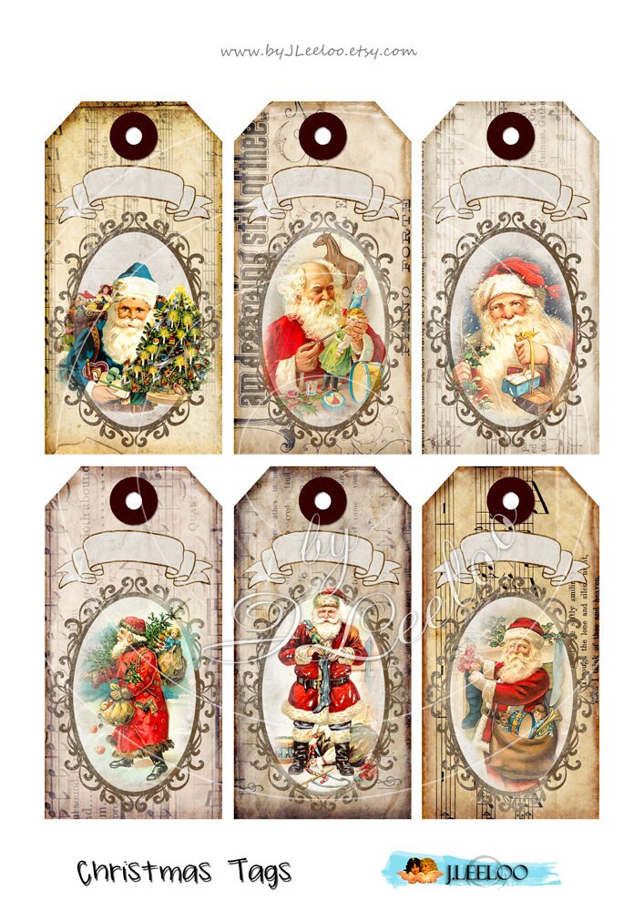 CHRISTMAS TAGS for greeting card - Digital collage sheet Santa tags gift card paper good - download printable vintage shabby chic for your others craft project.
