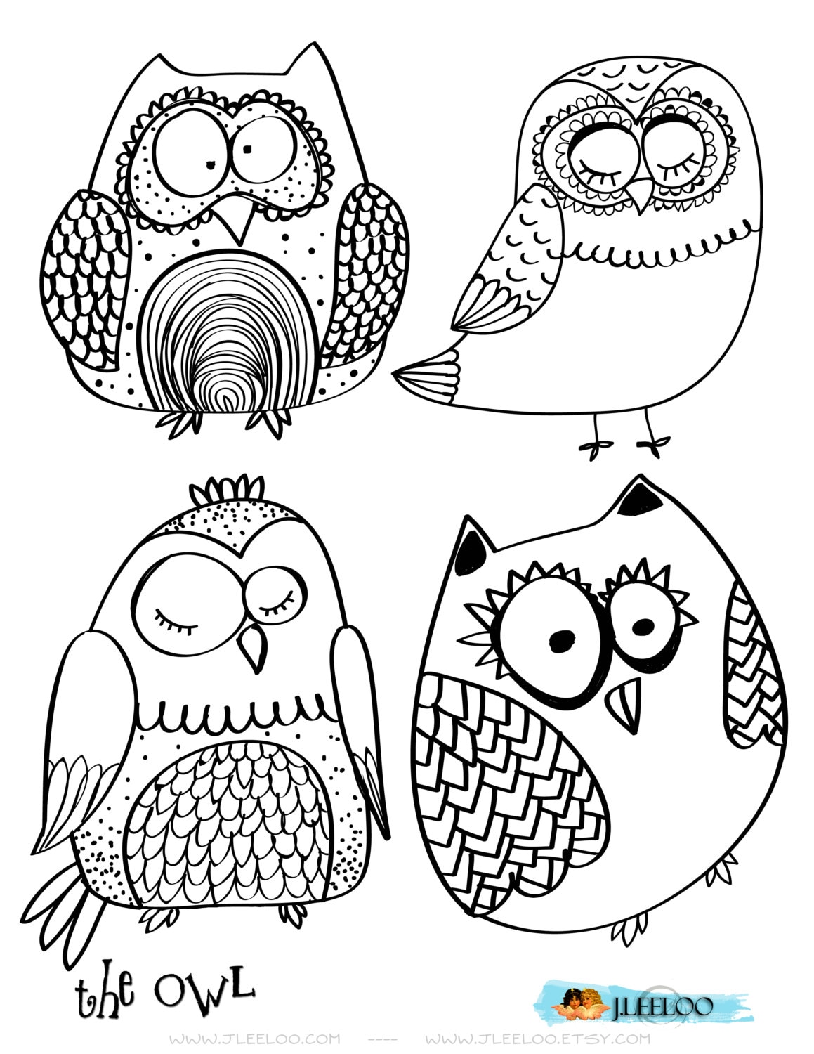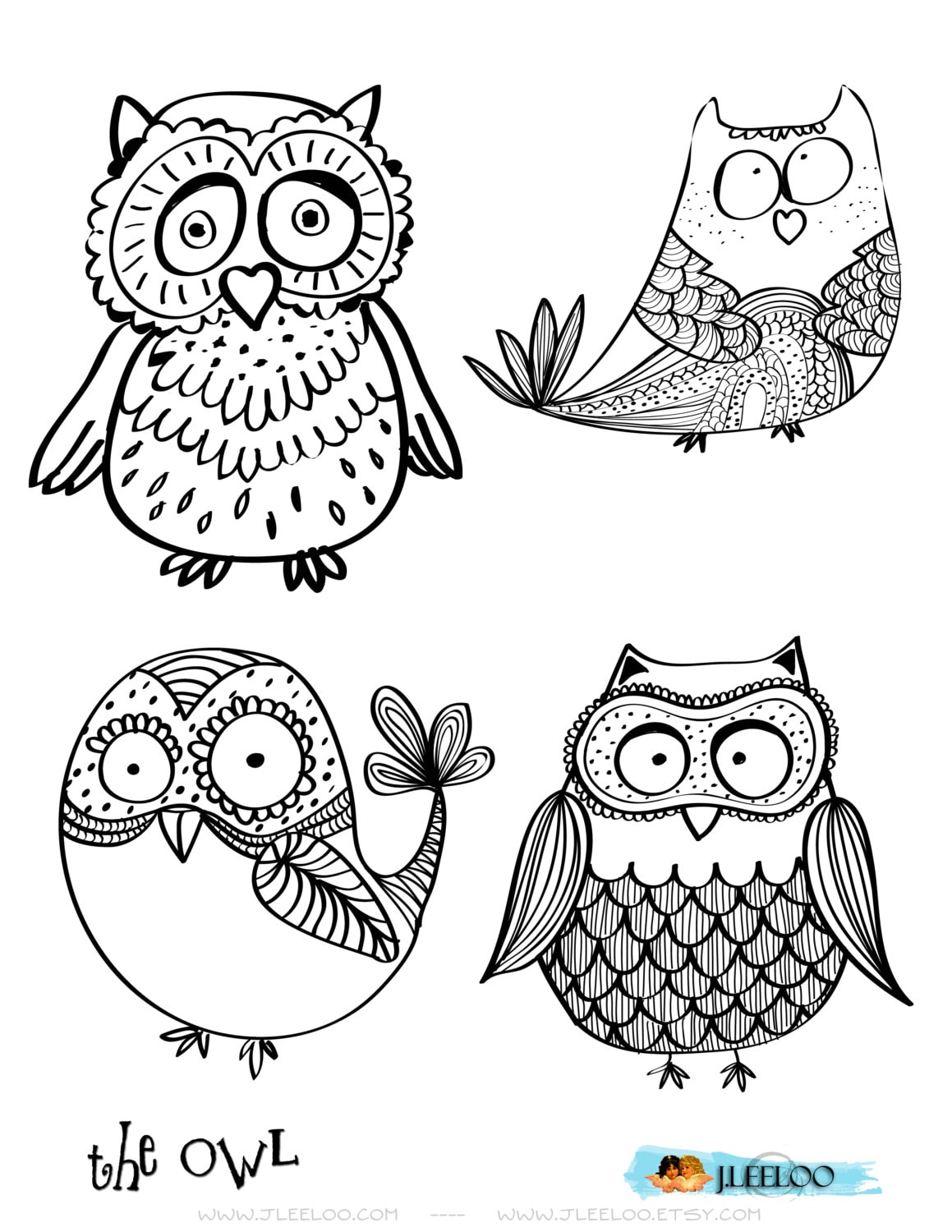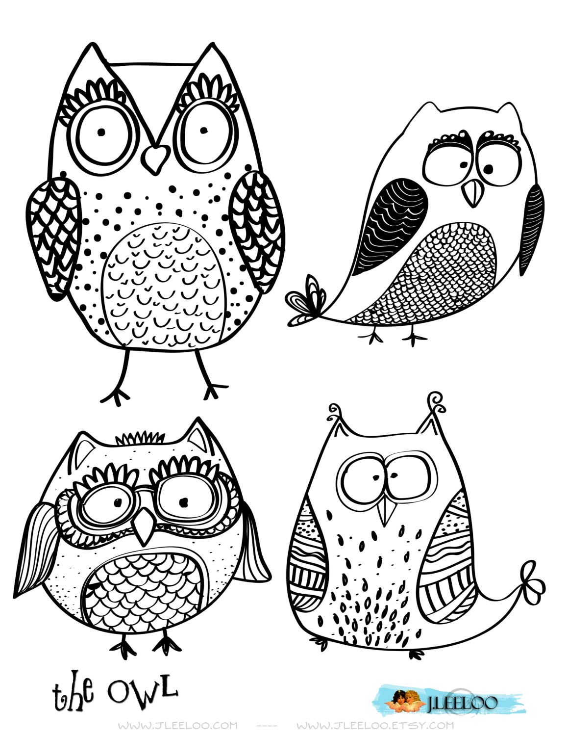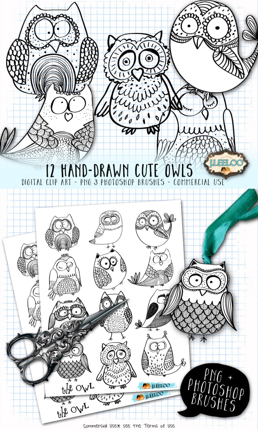 OWLS - Hand Drawn digital chic silhouette outline images for your crafting project - Digital Clip Art Printable Commercial Use PNG & Photoshop Brush invitation label Hand Drawn... a great supply for your artwork.