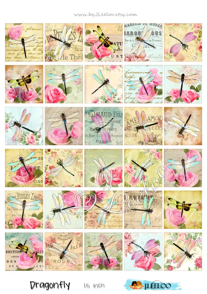 DRAGONFLY - Instant download printable - digital collage sheets - square images for your crafting project - glass cabochons, jewelry, resin pendants, hang tags, rings, earrings and all your need for your art.