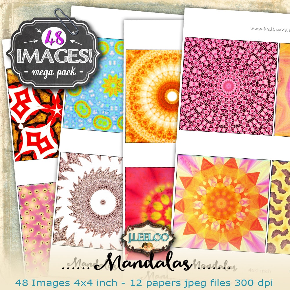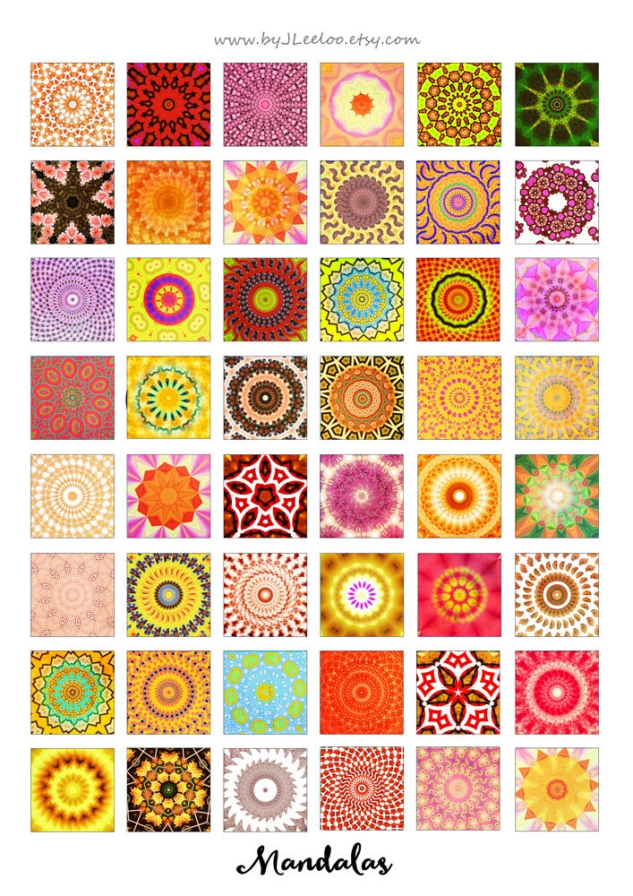 MANDALAS Instant Download - Digital collage sheets - Squares printable images for coaster, jewelry holder, hang tags, stickers and all your craft project.