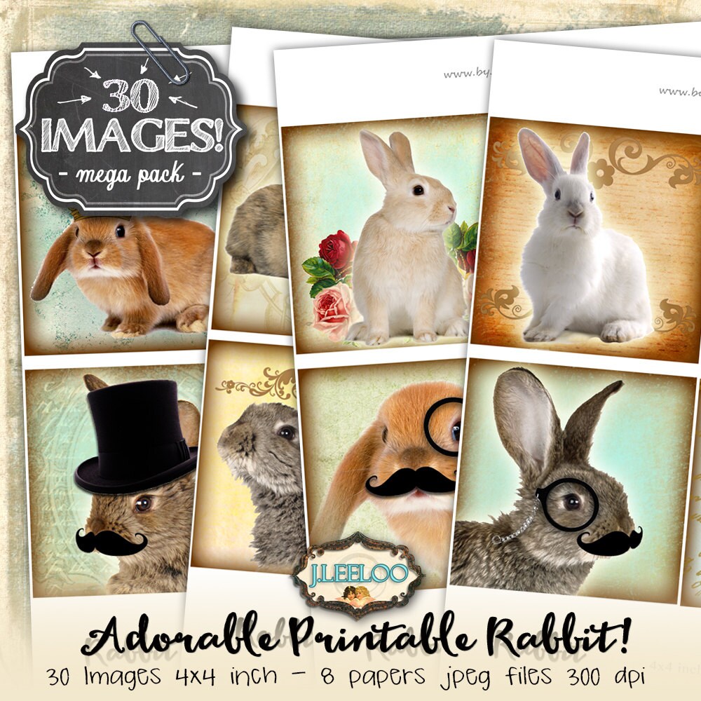 RABBIT Instant Download - Digital collage sheets - Squares printable rabbit images for coaster, jewelry holder, hang tags, stickers and all your craft project.