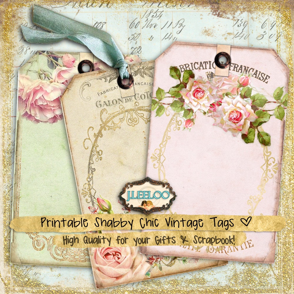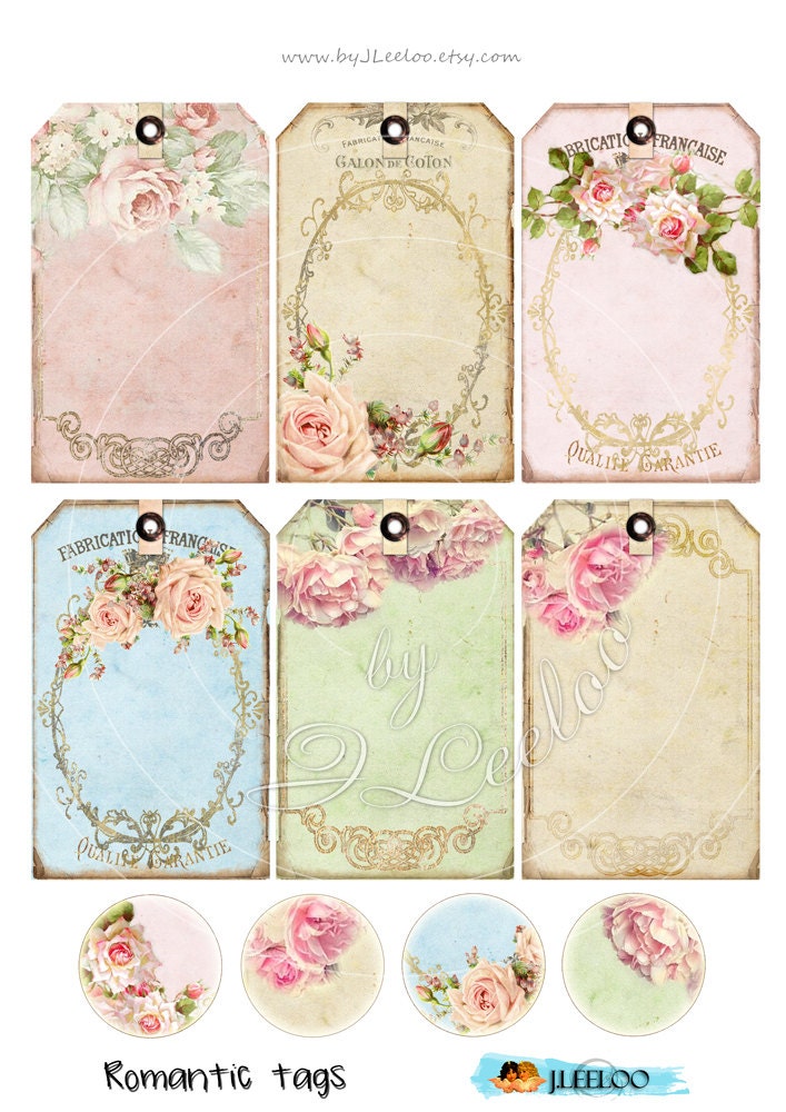 ROMANTIC TAGS digital shabby chic jewelry holder, french roses paper goods for craft art and your others craft project.