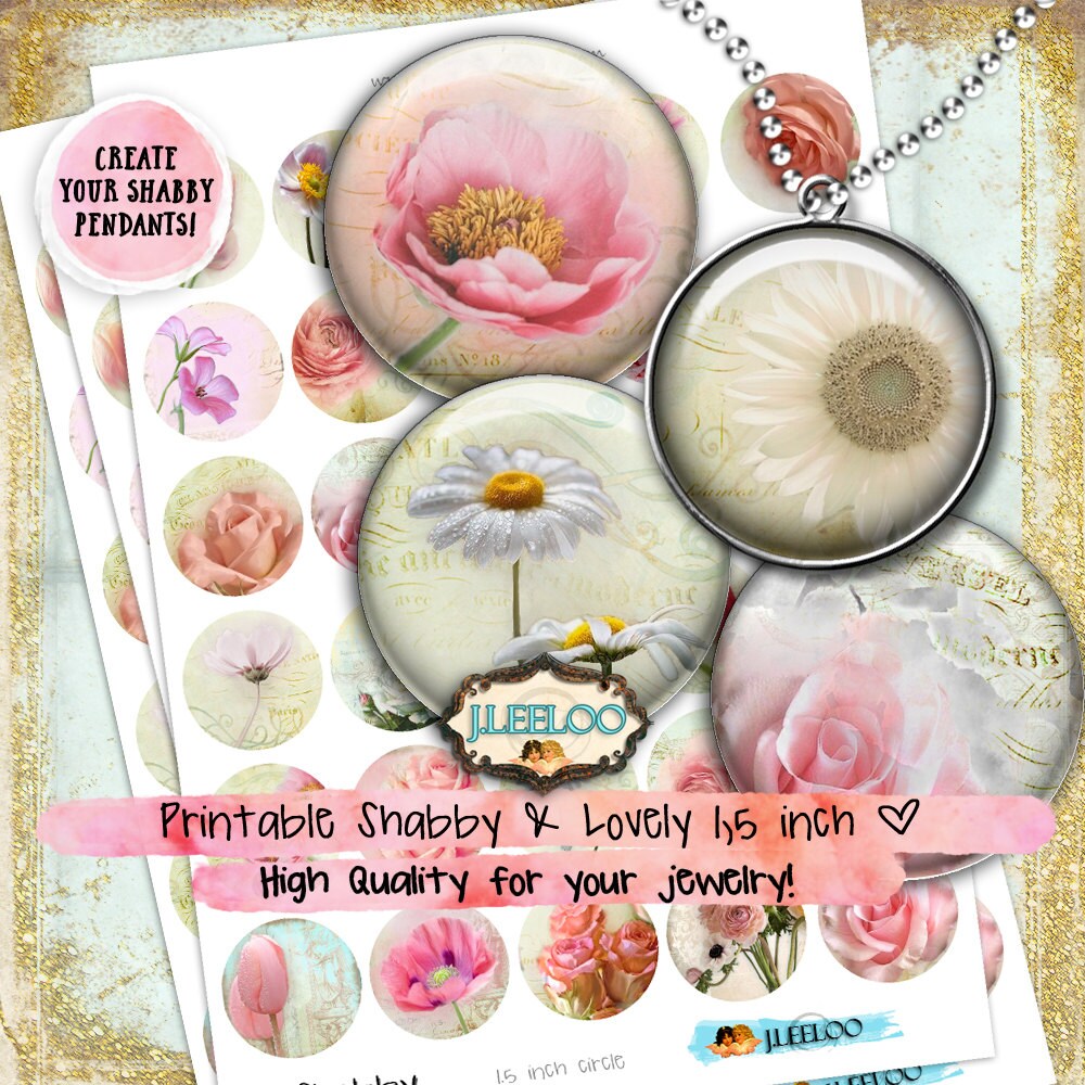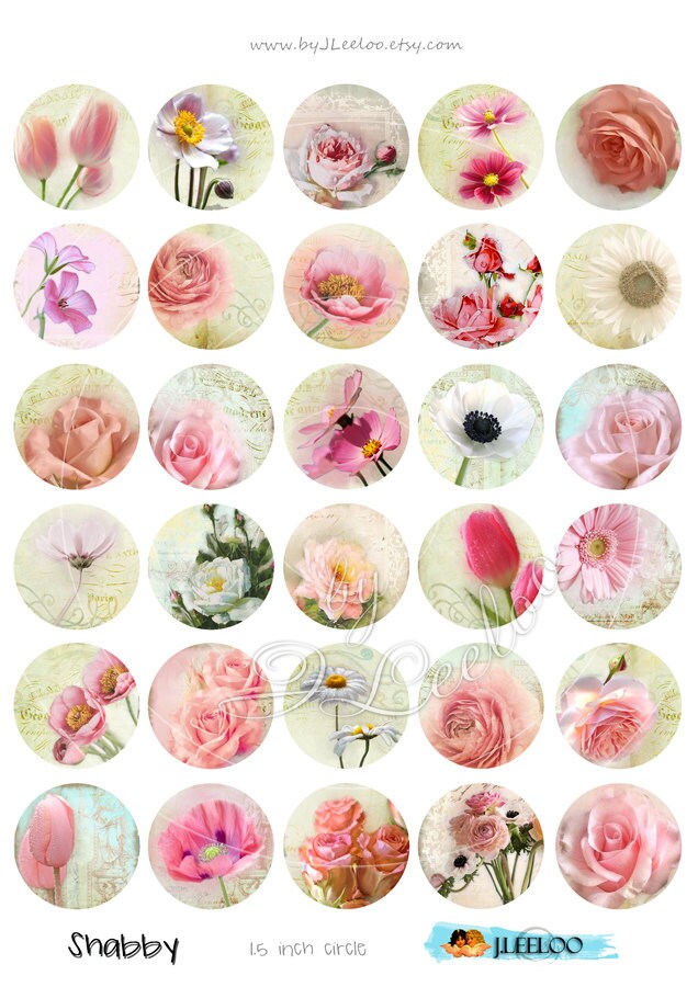 SHABBY - Instant download printable - digital collage sheets - french rose flowers round images for your crafting project - glass cabochons, jewelry, resin pendants, hang tags, rings, earrings and all your need for your art.