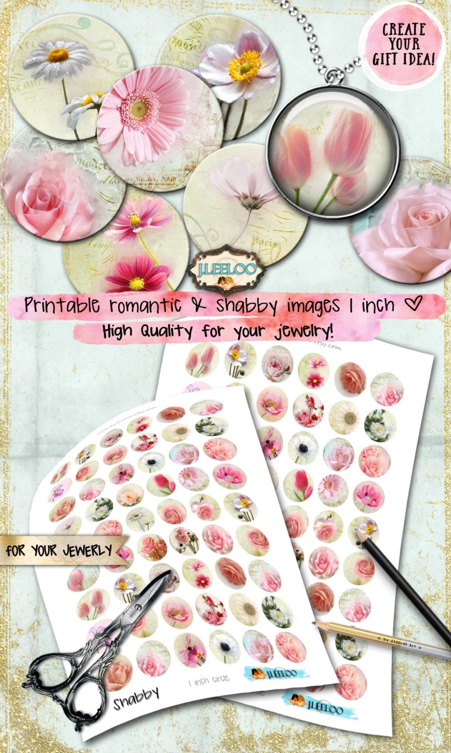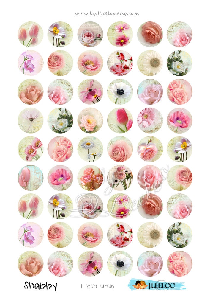 SHABBY - Instant download printable - digital collage sheets - french rose flowers round images for your crafting project - glass cabochons, jewelry, resin pendants, hang tags, rings, earrings and all your need for your art.