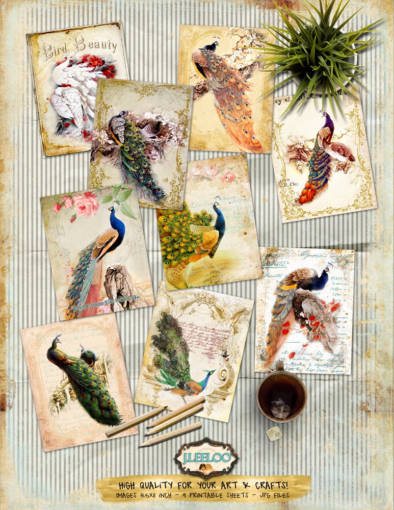 ❀ Here you can view other Digital collage sheets with peacock images: http://www.etsy.com/shop/byJLeeloo/search?search_query=peacockℴ=date_desc&view_type=gallery&ref=shop_search