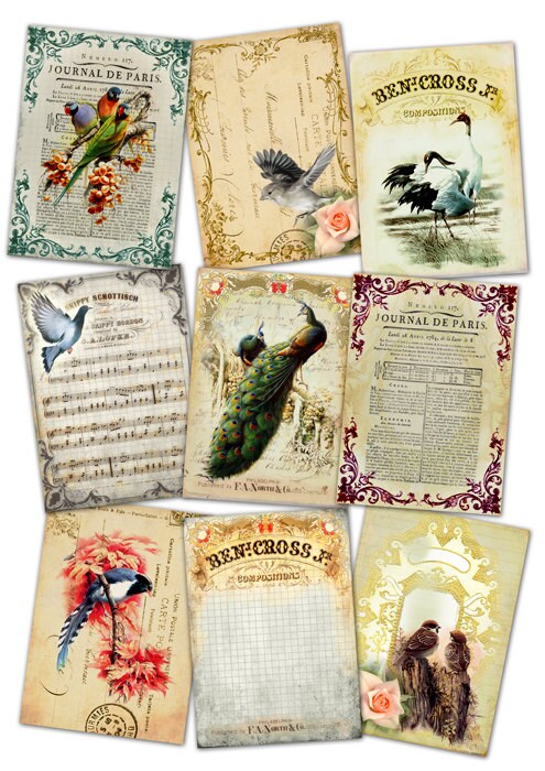 Digital collage sheets: download and print for card making, iron-on transfer, hang tags, labels, scrapbook, jewelry holders and your others craft projects.