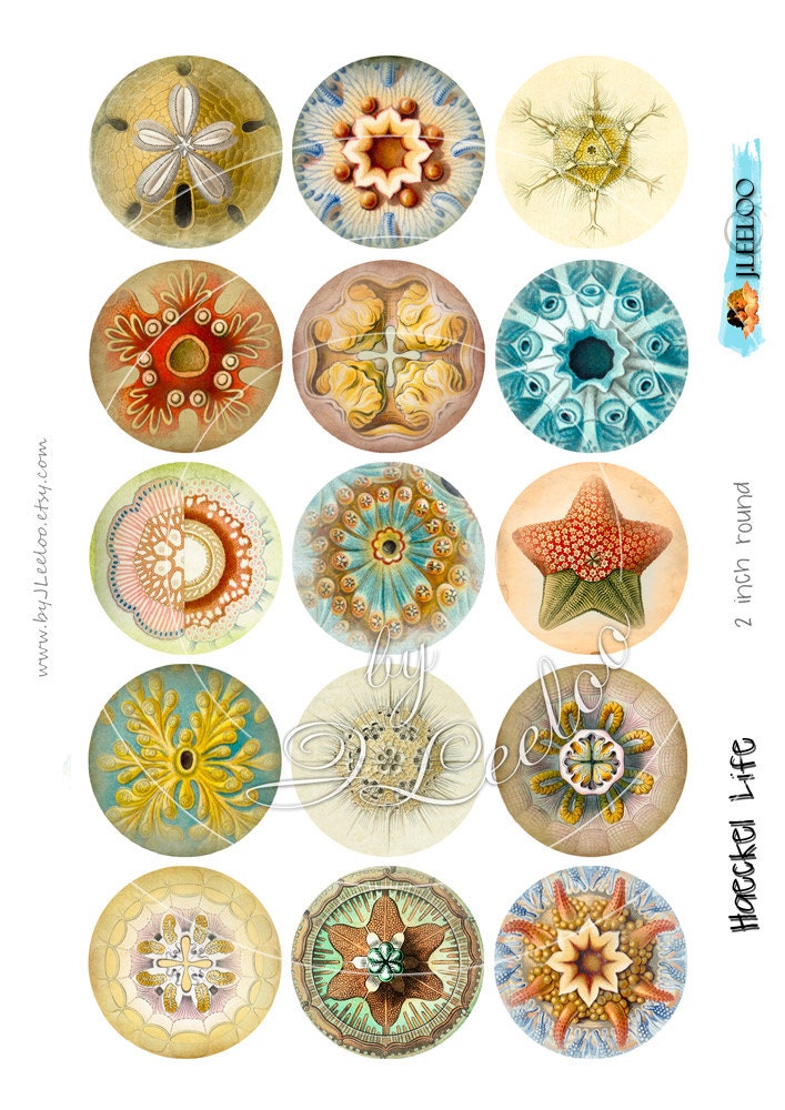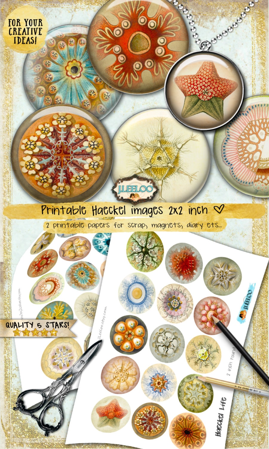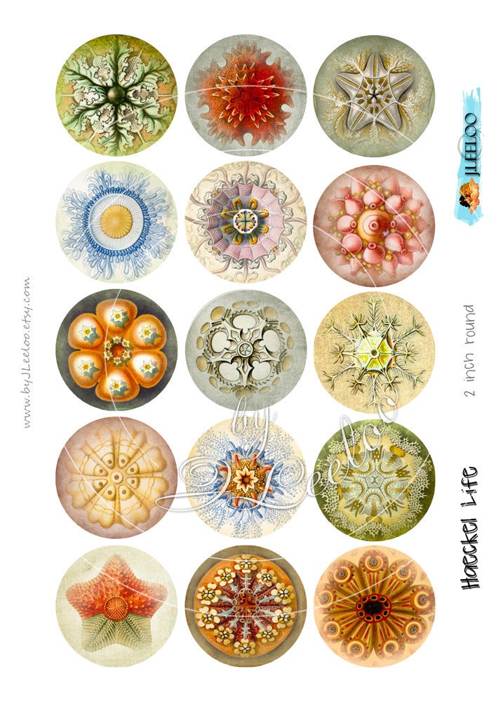 HAECKEL LIFE - Instant Download - Digital collage sheets - Round printable images for resin pendants, charms, card making, button, magnets, stickers and all your craft project.