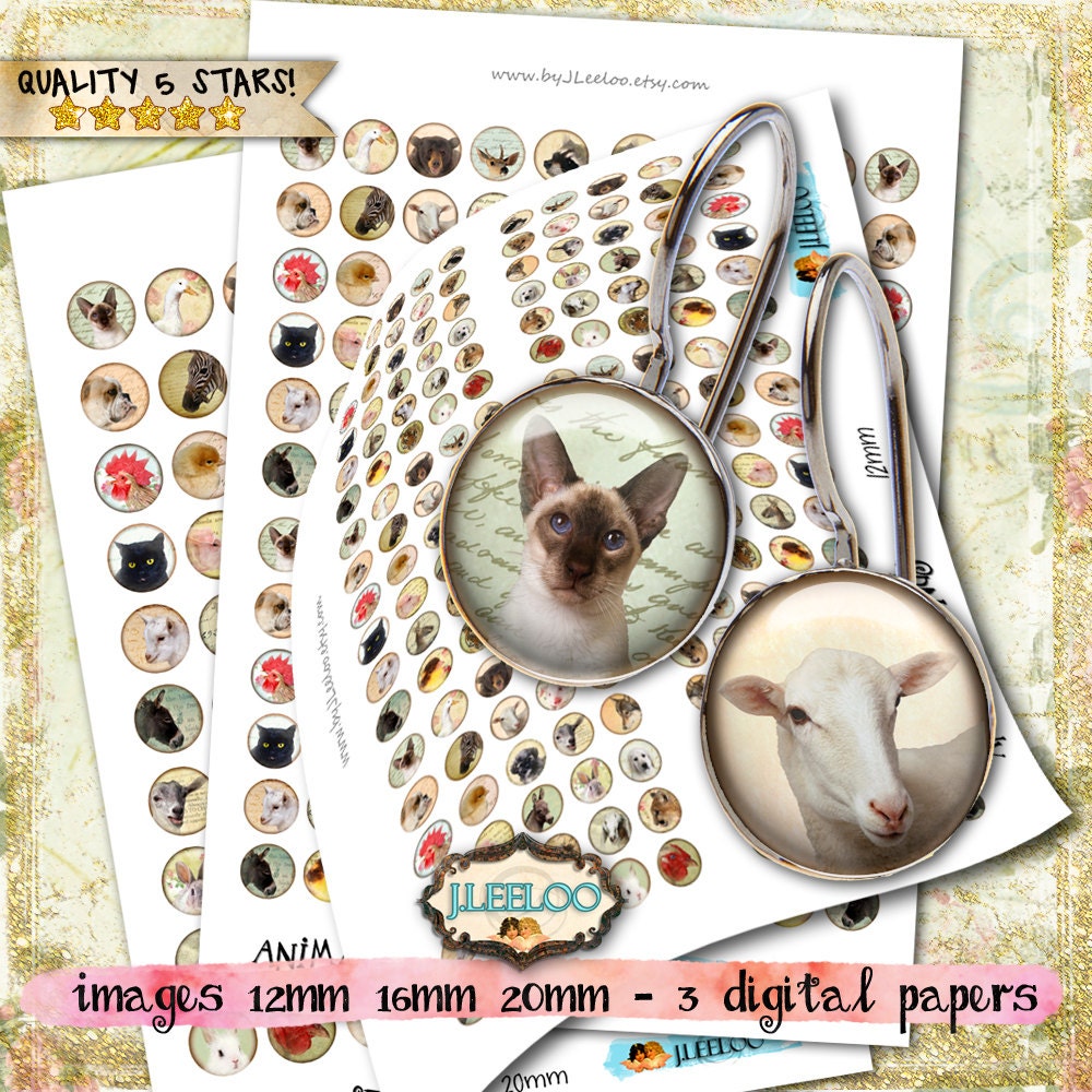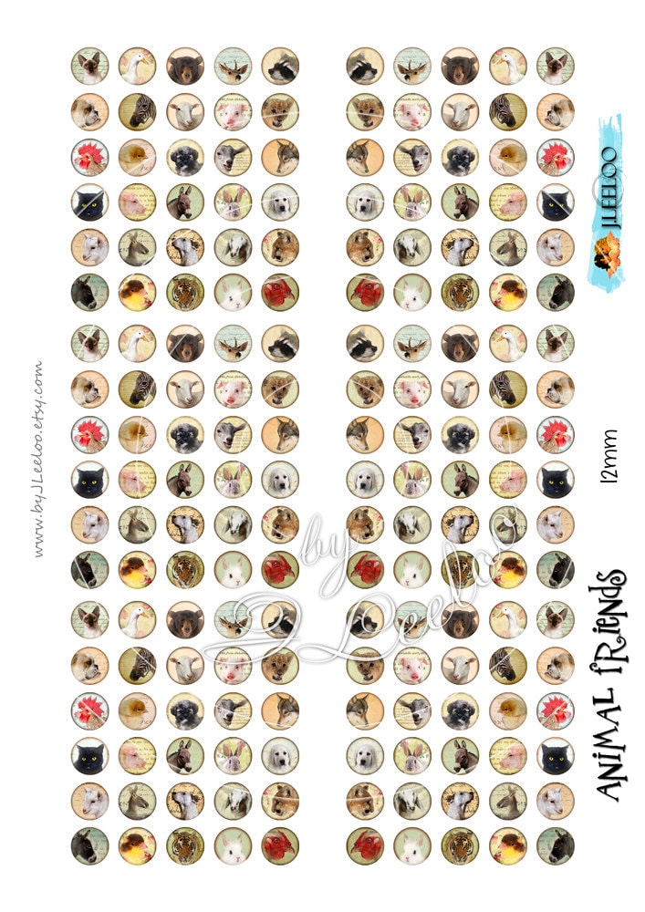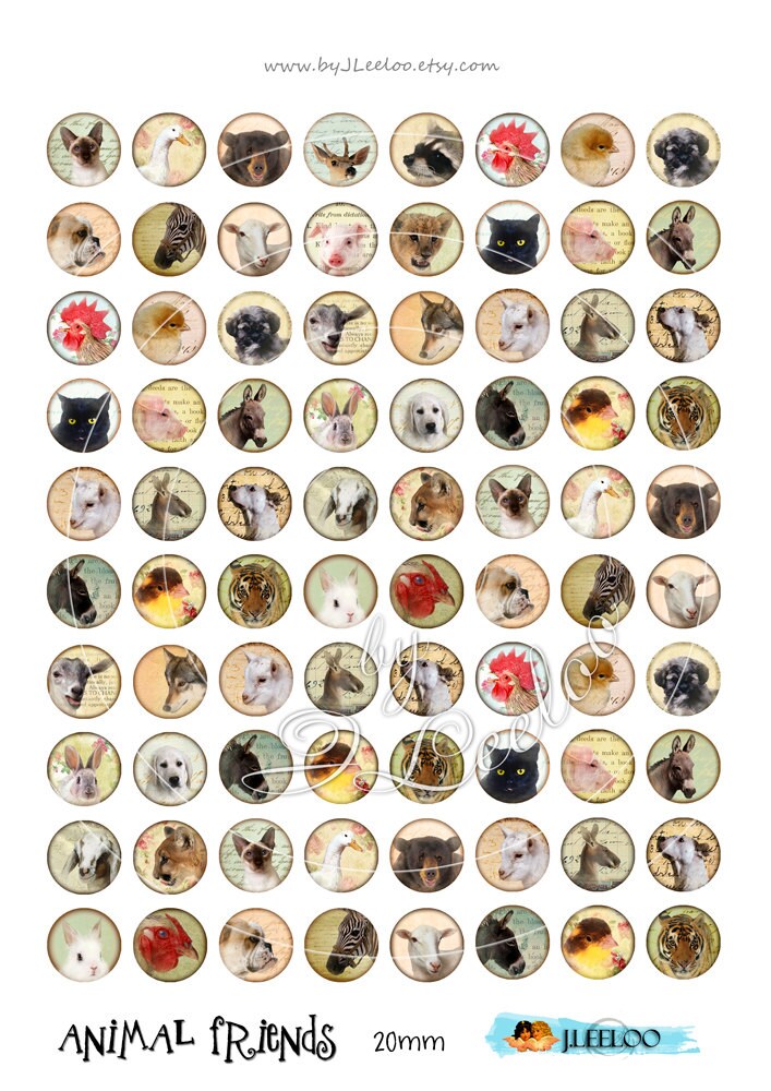ANIMAL FRIENDS - Digital collage sheets - Circles owl deer moose images instant download ready to print for your jewelry making, resin pendants, rings, earrings and button, for magnets, stickers, scrapbook and your others craft project.